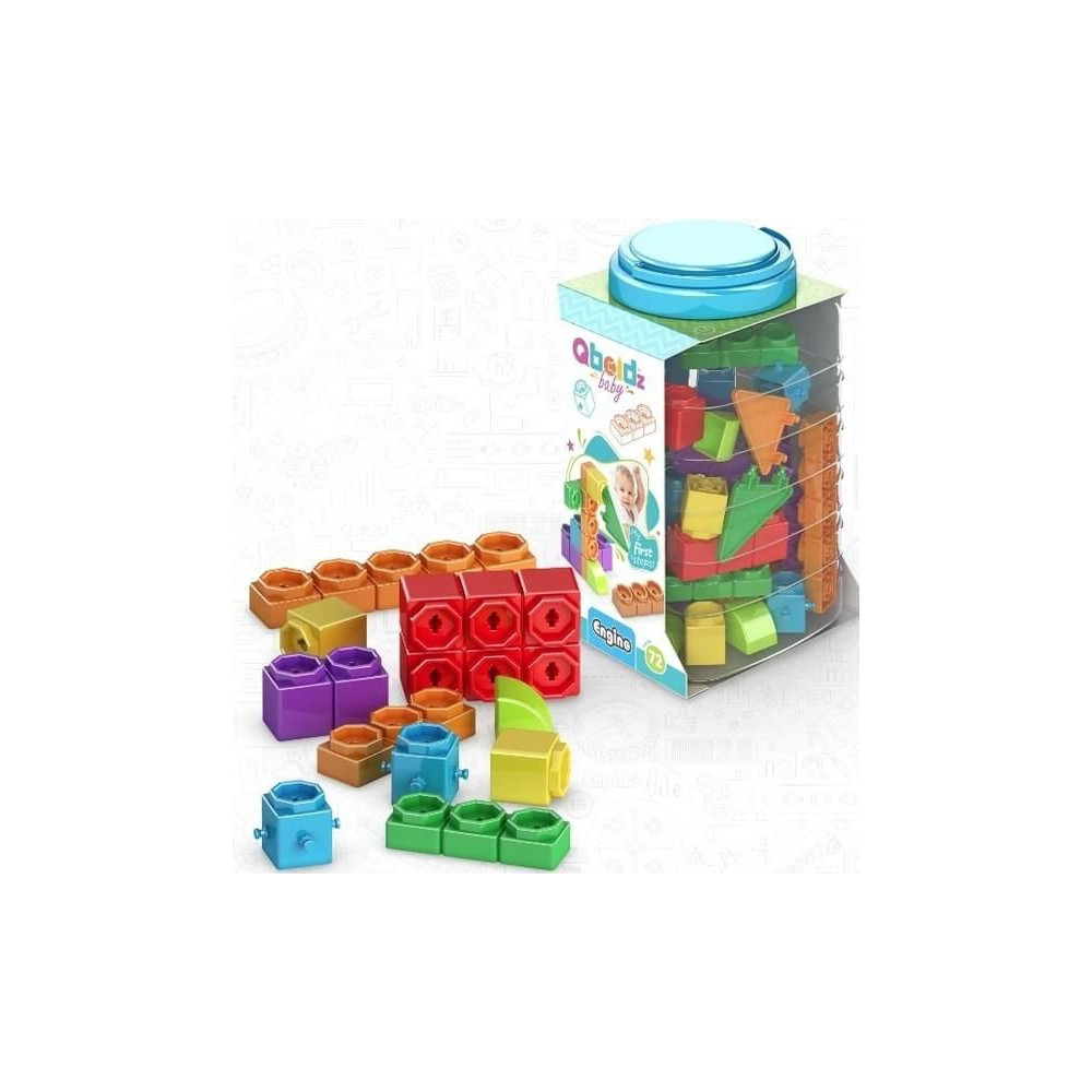 A Baby Qboidz™ 18 hónapos kortól alkalmasak a gyermekek számára! A nagyobb, stabilabb darabok, amelyeket a kisebb gyermekek biztonságosan és könnyen összerakhatnak, stabil műanyagdobozokba illeszkednek, amelyek lehetővé teszik az újrafelhasználást és a kényelmes tárolást. A Baby Qboidz™ sorozat még az egyszerűbb darabokkal is lehetővé teszi a két kritikus első szintű építési dimenziót: az első dimenzió lehetővé teszi, hogy a gyerekek a hagyományos blokkokhoz hasonlóan egymásra rakják a blokkokat, a második dimenzió pedig lehetővé teszi, hogy a darabokat oldalirányban összekapcsolják. Ahogy nőnek és tovább fejlesztik készségeiket, kézügyességüket és térérzékelésüket, ezeket az alkatrészeket más Qboidz-elemekkel kombinálhatják, hogy három és négy dimenzióban való építési készségeket szerezzenek.