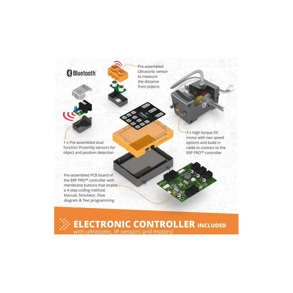 ACODINGLAB ERP MINI™az ENGINO®által tesztelt technológiák egy olyan csomagja, amelyet világszerte iskolákban használnak robotika és programozás oktatására. Az eszköz ezen változata fejlett funkciókkal rendelkezik, és kézzel programozható vezérlővel rendelkezik, amely bluetooth-on keresztül okoseszközökhöz vagy USB porton keresztül számítógéphez is csatlakoztatható. A KEIRO™szoftver segítségével programozható, és teljes körű átkonfigurálást tesz lehetővé robotmodellek létrehozásához, valamint 2 infravörös távolságérzékelőt és két motort tartalmaz.