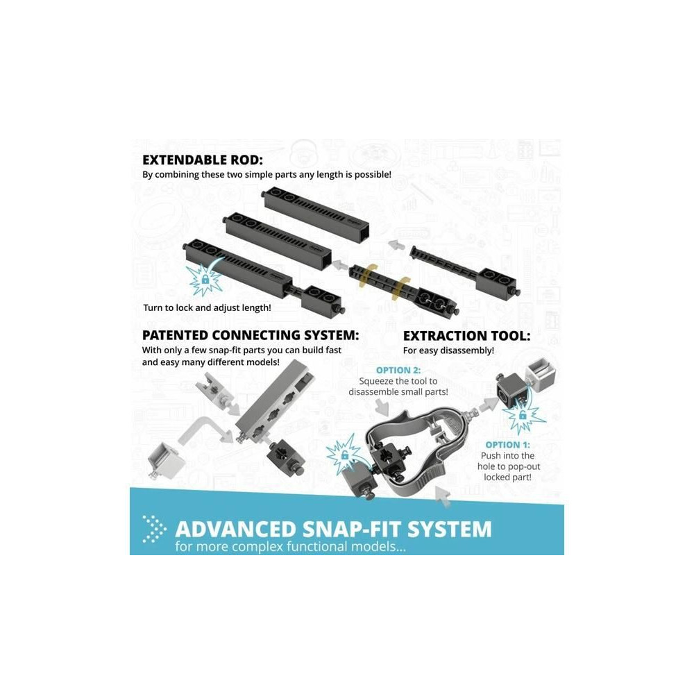 - Hosszabbító rudak: A hosszabbító rudak használata lehetővé teszi, hogy 2D-s szerkezeteket 3D-s tervekké alakítson át, és fejlessze a térbeli gondolkodást.