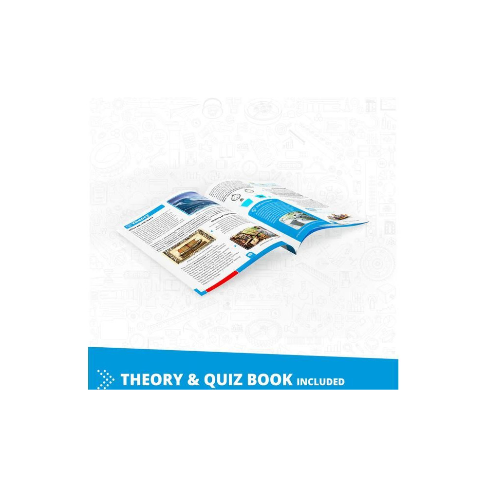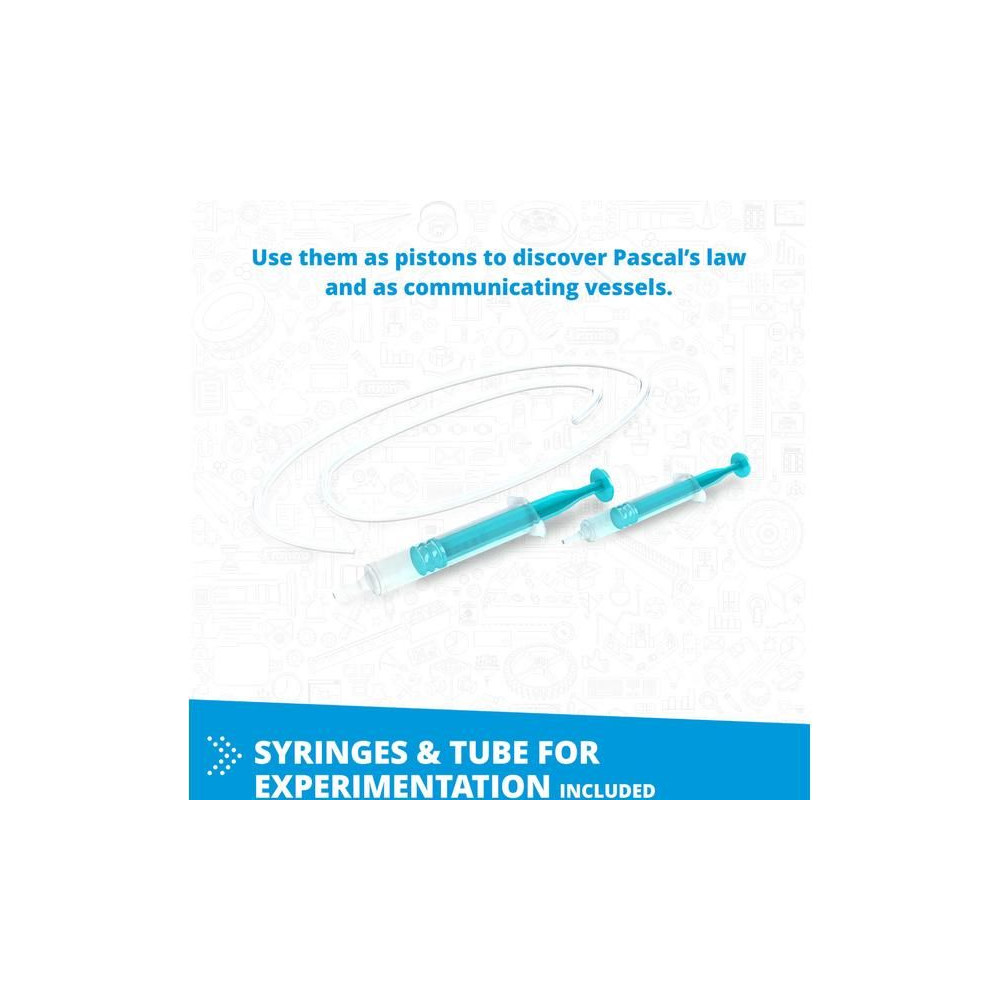 A víz és a levegő az élet két legfontosabb eleme, és a folyadékok és a gázok közös elnevezése, a fluidum alá tartoznak. A levegő mozgása határozza meg szobáink hőmérsékletét. A csövek vízzel látják el otthonunkat. Az ipari és építőipari gépek hidraulikát használnak a nehéz tárgyak könnyed megemeléséhez. A repülőgépek és a hajók az aerodinamika és a hidrodinamika segítségével változtatják az irányt. Gondolkoztál már azon, hogy miért süllyednek el tárgyak a vízben, míg mások lebegnek? Hogyan áramlik a vér a testünkben? Hogyan működnek a víztartályok? Ezzel a készlettel 6 különböző modellt építhetsz, köztük egy hajót és egy tengeralattjárót, valamint számos kísérleti készletet, amelyekkel mindent megtudhatsz a folyadékdinamikáról! A csomag 4 modellhez nyomtatott építési útmutatót tartalmaz, a másik 2 modell pedig online és az okoseszközökre készült ingyenes kidCAD alkalmazáson keresztül is elérhető.