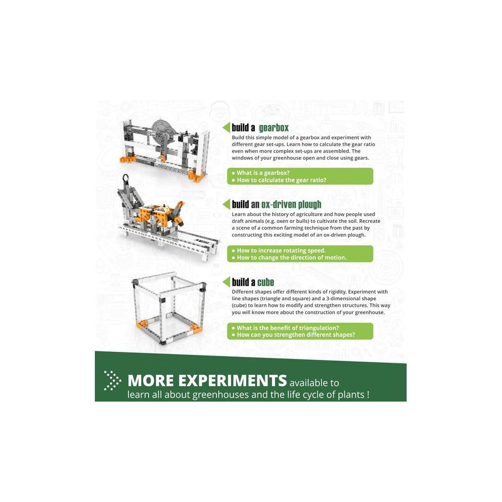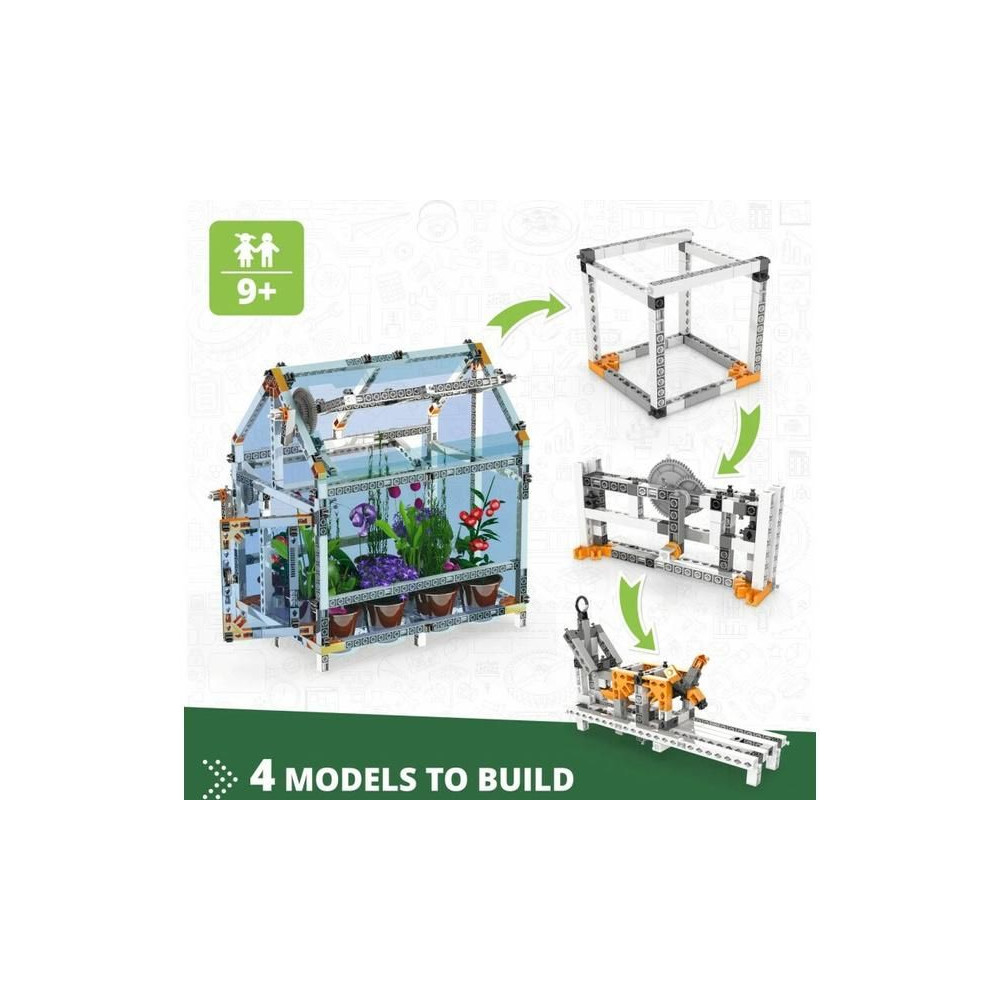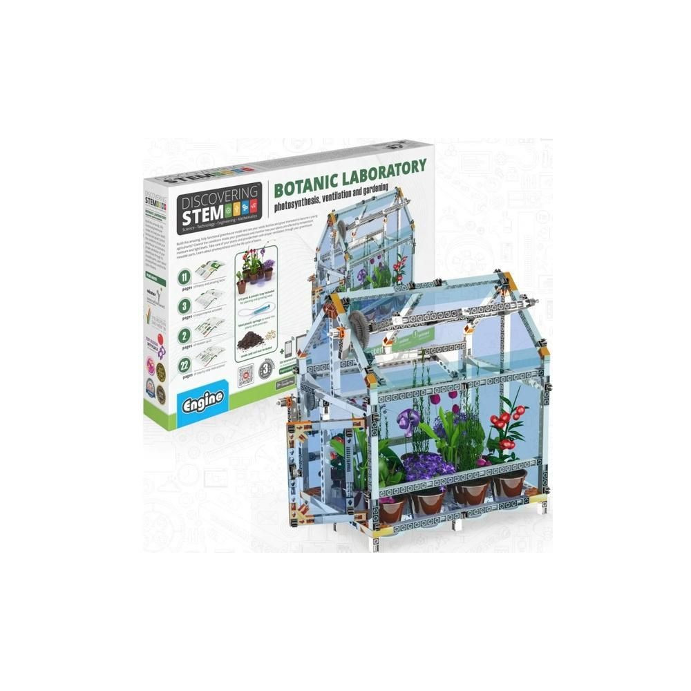 A szórakoztató és praktikus Engino Stem Botanikai laboratórium - Fotoszintézis, szellőzés és kertészkedés oktatócsomagok segítségével jobban megértheted a növénytermesztés alapelveit egy teljesen működőképes üvegházban.