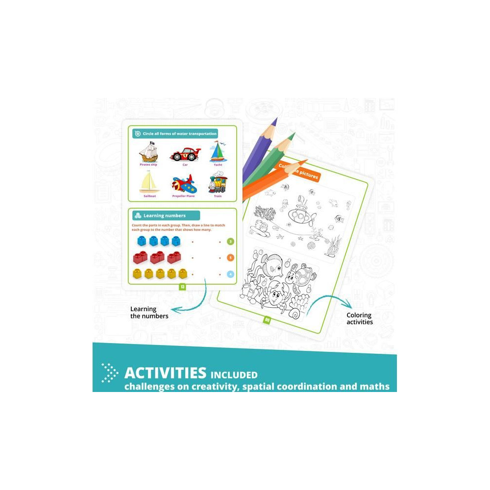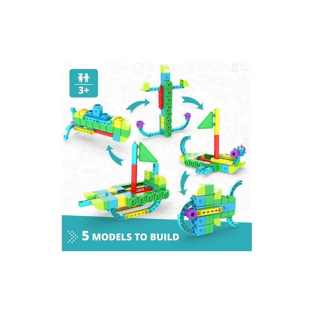 Az alapvető STEAM-fogalmakat tartalmazó játék és könyv kombinációja bevezeti a gyerekeket a tenger rejtelmeibe. A gyerekek lebilincselő tevékenységeken és részletes útmutatásokon keresztül halmodelleket, hajót vagy tengeralattjárót építhetnek egy felügyelő felnőtt irányításával. Minden egyes téma izgalmas tényekkel és meglátásokkal szolgál, amelyek fokozzák a tengeri ökoszisztémák megértését.