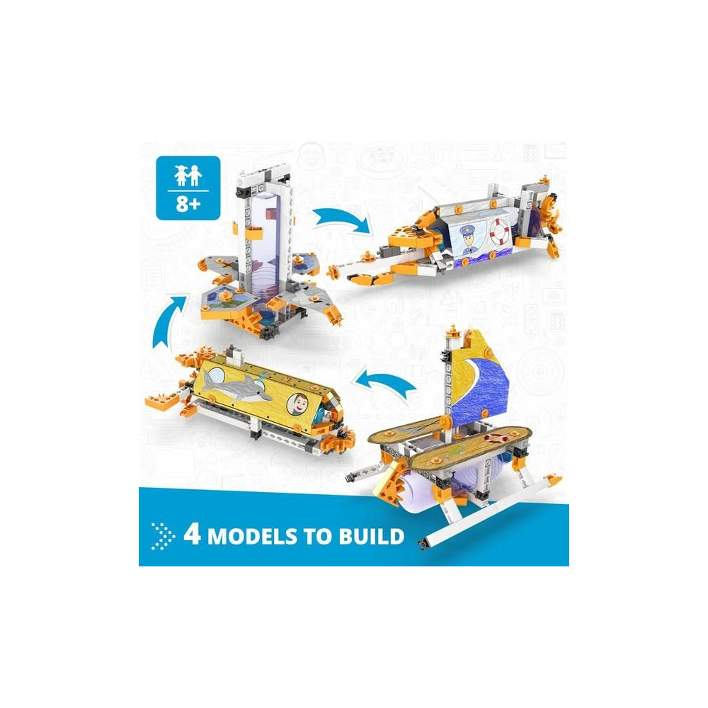 A fiatal mérnökök 4 csodálatos tengeri hajót építenek, köztük a saját futurisztikus úszó szállodájukat, miközben felfedezik, miért mozognak a hajók, és mindent megtudnak a tengeri utazás és kereskedelem csodálatos történetéről ezzel a gyakorlatias STEAM készlettel.