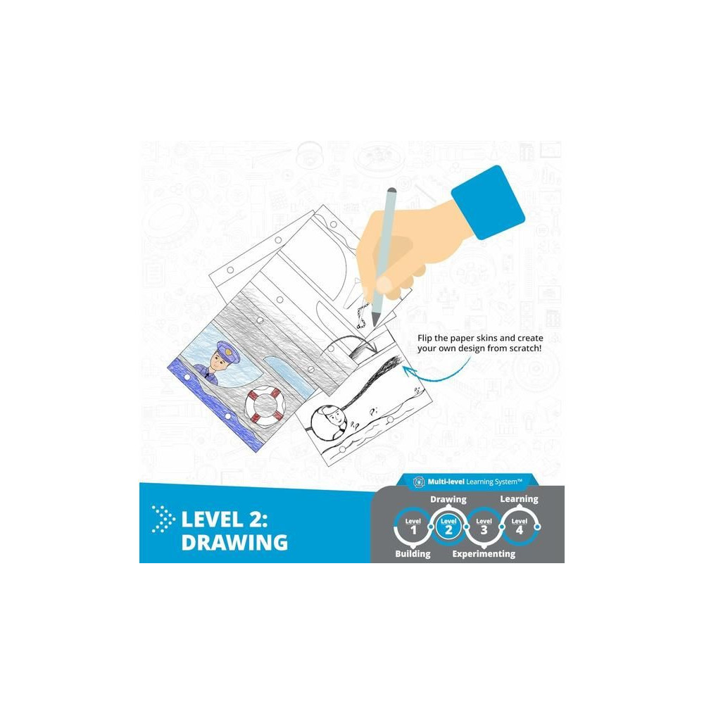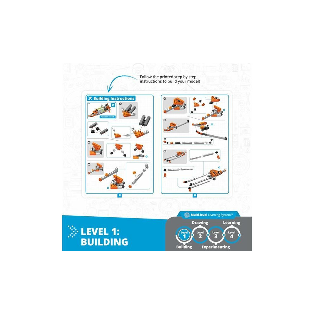 A STEAM LABS⢠játéksorozat még érdekesebb, mert a játékot a doboz külső oldalán található elméleti és tevékenységi könyvvel kombinálja, amely egy zsugorfóliába csomagolt fóliában található. Minden készlet tartalmaz papírlapokat előre megtervezett mintákkal, amelyeket a gyerekek megfesthetnek, kivághatnak és felragaszthatnak a modelljeikre. A könyvek elmagyarázzák a téma mögött álló elméletet, és az egyes témákhoz kapcsolódó intelligens kísérletezési tevékenységeket tartalmaznak. Ezekhez a könyvekhez egy ingyenes kiterjesztett valóság (AR) alkalmazás is tartozik, amely még érdekesebbé és szórakoztatóbbá teszi a tartalmat!