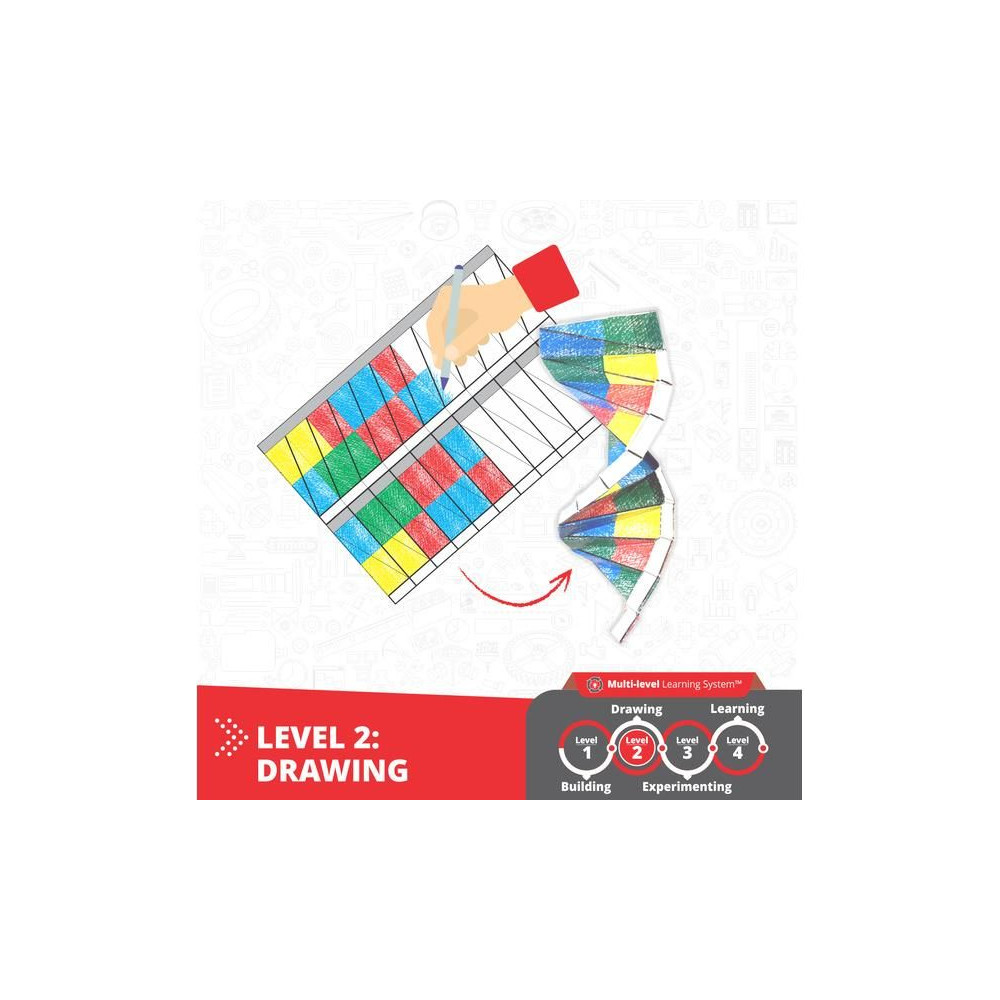 - Minden készlet tartalmaz egy elmélet és tevékenység könyvet, amely előre megtervezett vázlatokkal fokozza az élményt a festéshez, vágáshoz és a modellekhez való rögzítéshez