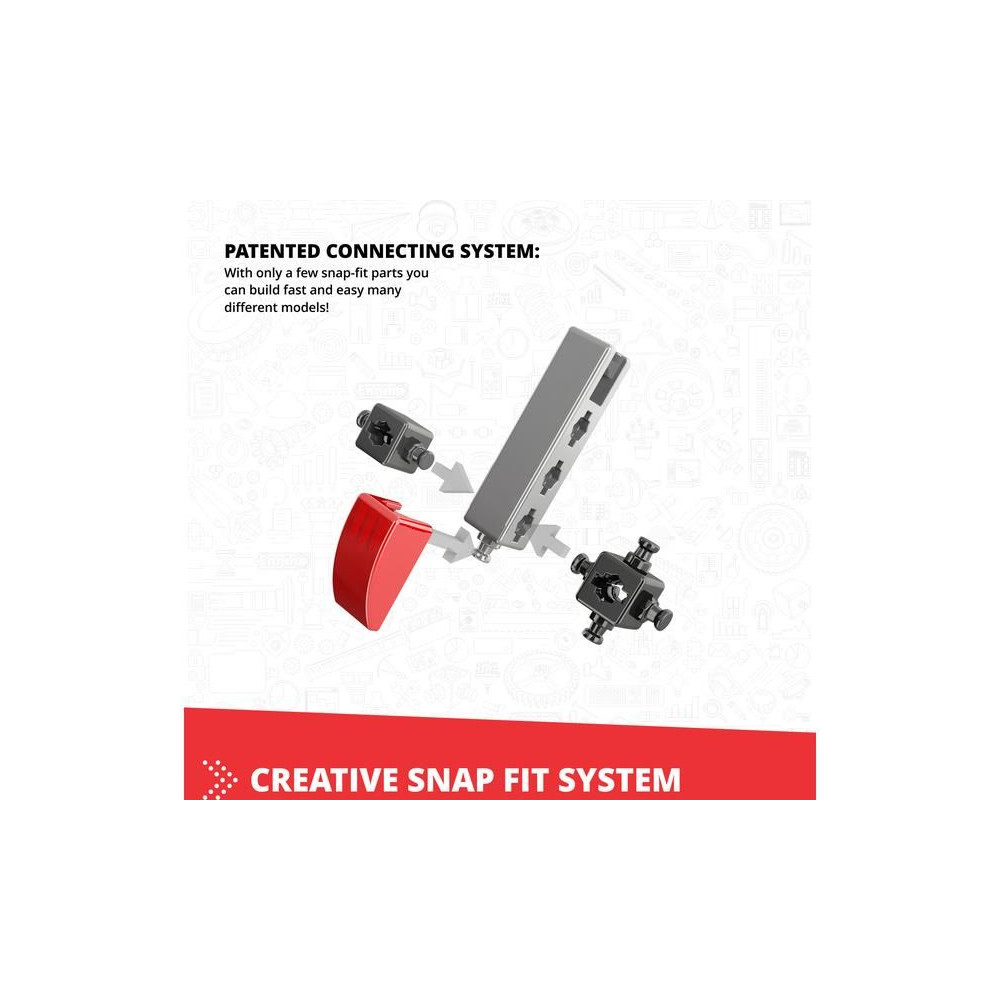 - Innovatív kialakítás: a szabadalmaztatott pattintható csatlakoztathatóság és a többirányú forgócsapok lehetővé teszik, hogy különböző szögekből, akár 6 oldalról egyszerre építkezz.
