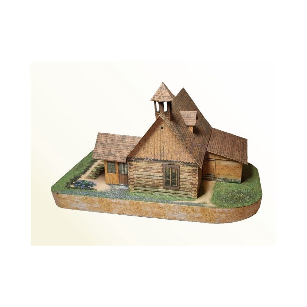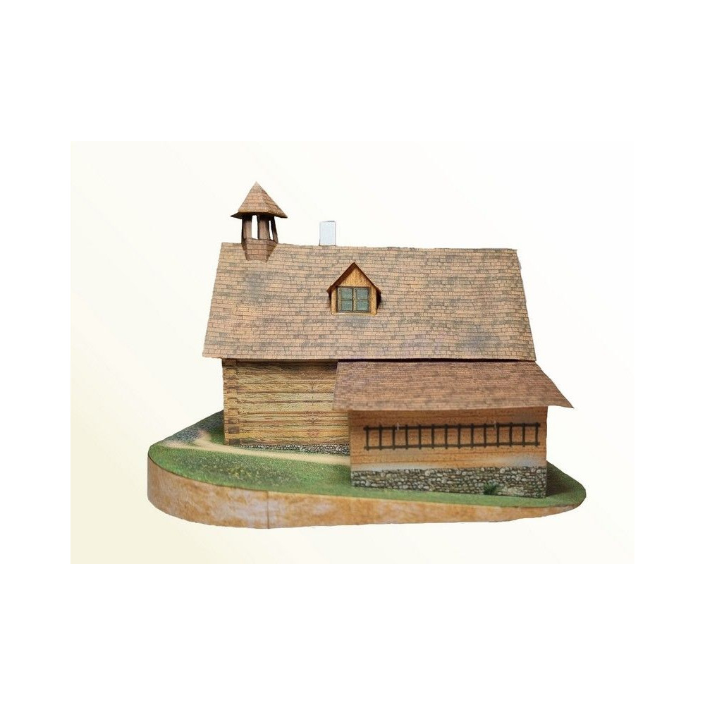 Model a omaľovánka - predstavuje súčasnú podobu Obecnej školy, ktorá sa v súčasnosti nachádza v skanzene v Rožnove pod Radhoštěm. Model si môžete postaviť vo farebnej verzii alebo si ho vyfarbiť sami.