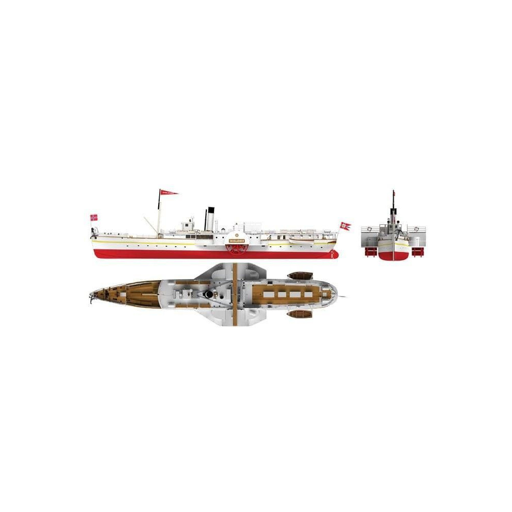 A norvég kerekes gőzhajó, Modell-Tec D/S Skibladner 1:60-as készlet, sok részlettel, 83 cm hosszú. A modell összeállítható nem úszó modellként, vagy felszerelheted RC készlettel és elektromos meghajtással, és működőképes hajóként üzemeltetheted.