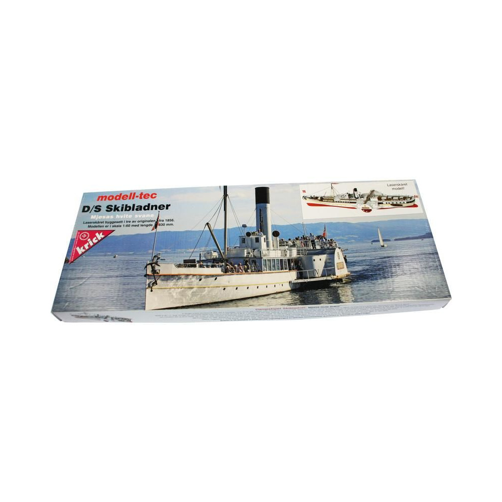 A norvég kerekes gőzhajó, Modell-Tec D/S Skibladner 1:60-as készlet, sok részlettel, 83 cm hosszú. A modell összeállítható nem úszó modellként, vagy felszerelheted RC készlettel és elektromos meghajtással, és működő hajóként üzemeltetheted.