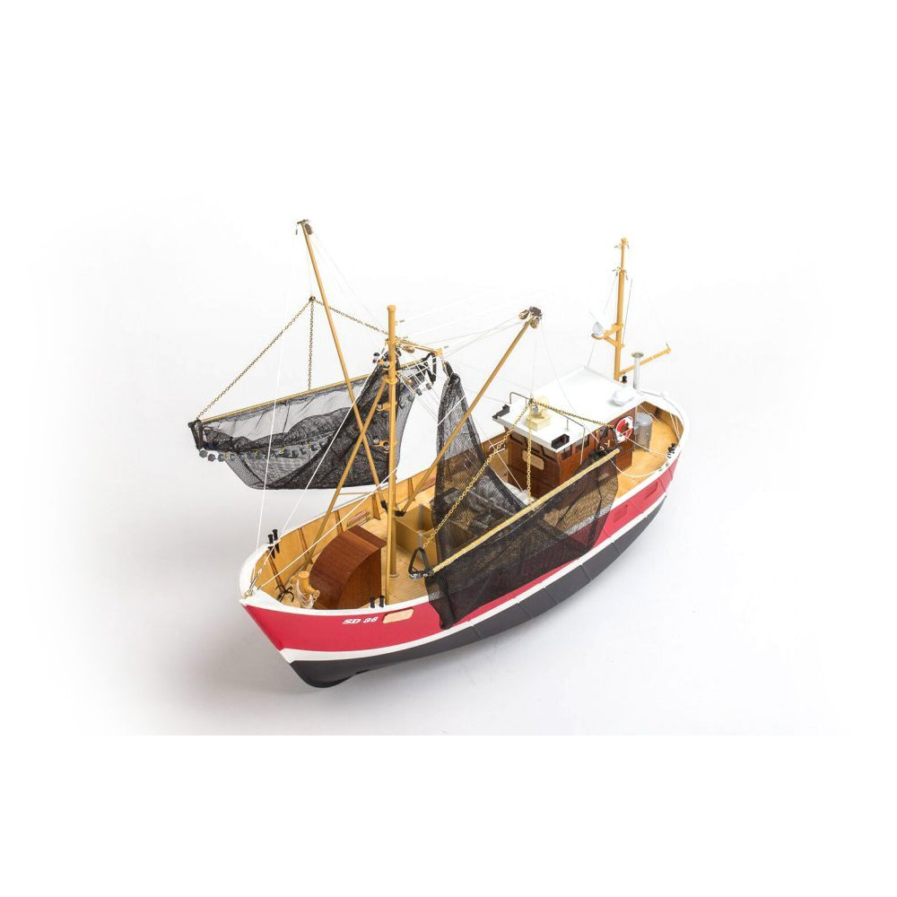 Ez a modell egy ügyesen megtervezett hajótesttel rendelkezik, amely a Jule-t még viharos tengeren is hihetővé teszi. Ez a halászhajó az eredeti alapján készült, amely az Északi- és a Balti-tengeren látható. A Jule nagyon magas szintű részletességgel nyűgöz le. A mellékelt maratott alkatrészkészlet nemcsak számos szerelvényt tartalmaz, hanem a fedélzet teljes fogó- és megmunkálási területét is. A frissen fogott ebédfőzőn kívül számos lámpa és lámpás is található, amelyek opcionális LED-es bővítésre invitálnak. A hab a tortán, hogy a fő fényszóró teljes mértékben működtethető, és a csörlő segítségével 360°-ban elforgatható. Így semmi sem áll a sikeres napfelkelte fogás útjába.