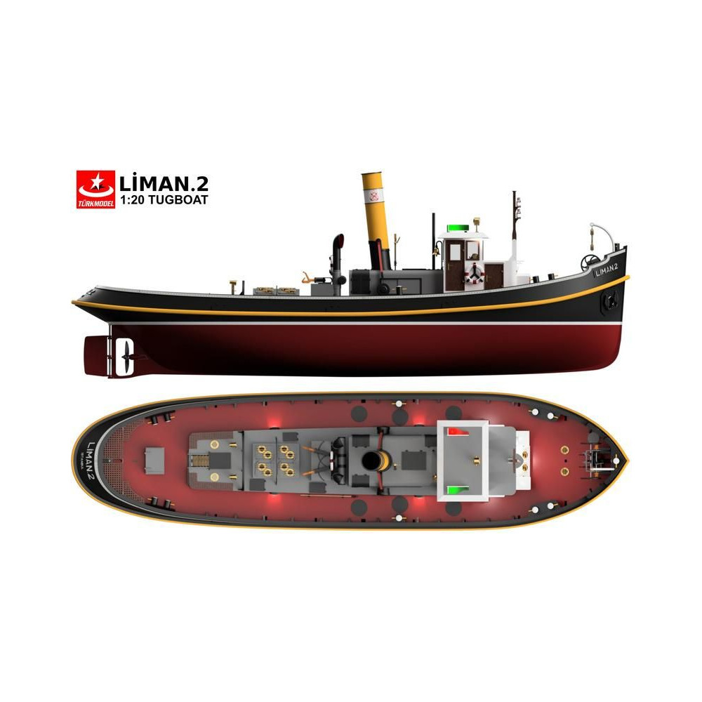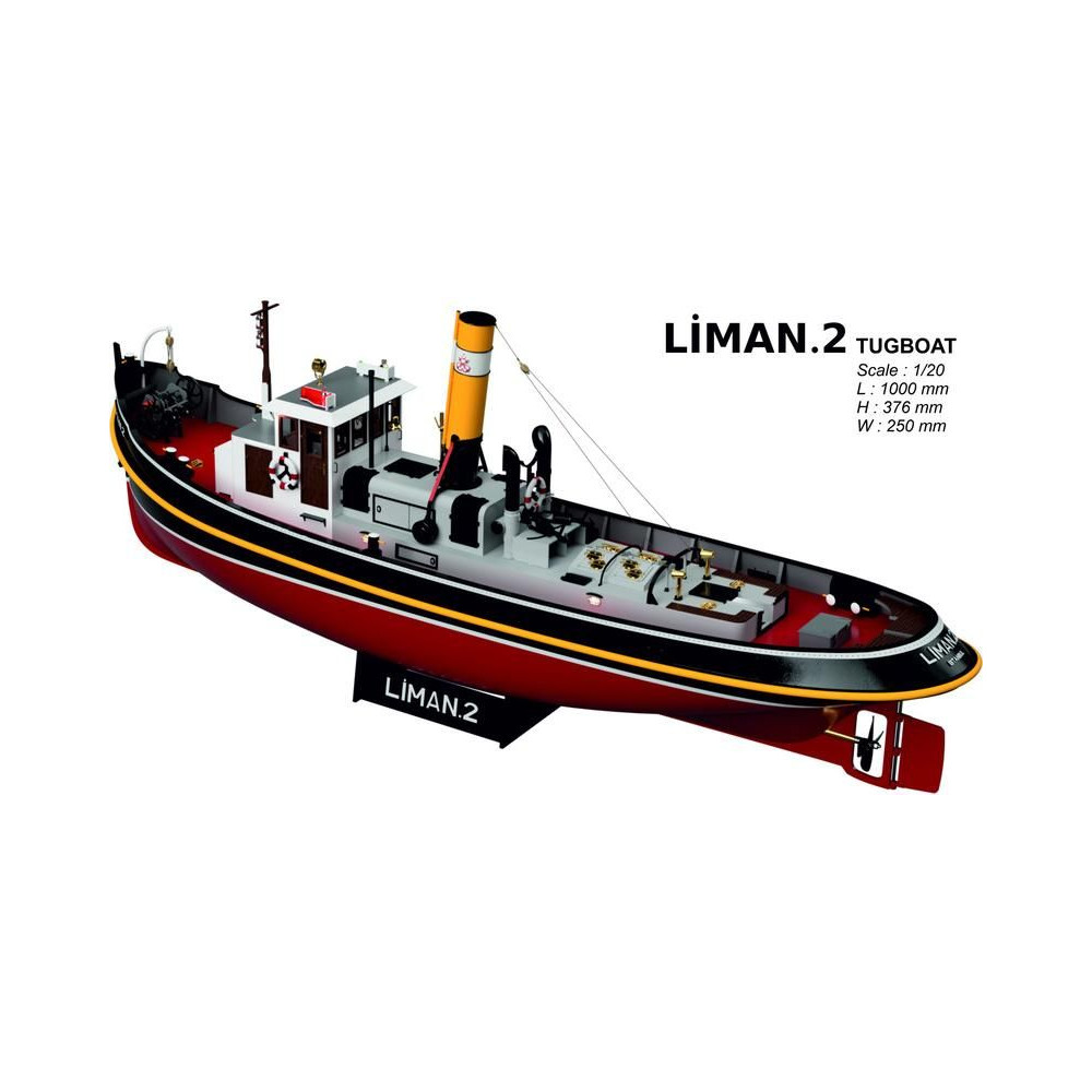 A Liman 2 kikötői vontatóhajó 1:20 méretarányú modellépítő készlete. Haladó modellezők számára alkalmas hajóépítés. A modell tartalmaz egy fából készült rétegelt lemezből készült hajótestet, Abachi öntvényekkel. A fa alkatrészek precízen és tisztán lézervágottak. A modell továbbá kiváló minőségű, gyantázott 3D nyomtatásból származó alkatrészeket tartalmaz. A főhíd felszerelt belsővel és kormánylapáttal rendelkezik. A készlet statikus modellnek készült, de összeállítható úszó modellként is, hajtással, elektronikával és RC-készlettel kiegészítve. (Nem tartozék).
