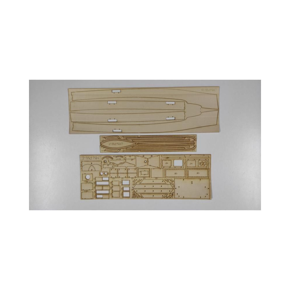 A Liman 2 kikötői vontatóhajó készlete. Haladó modellezőknek. Lézervágott alkatrészekből készült fa hajótest, 3D nyomtatásból származó részletekkel, beleértve a felszerelt belső teret is. A modell statikusan van kialakítva, de RC felszereléssel, vitorlázáshoz bővíthető.