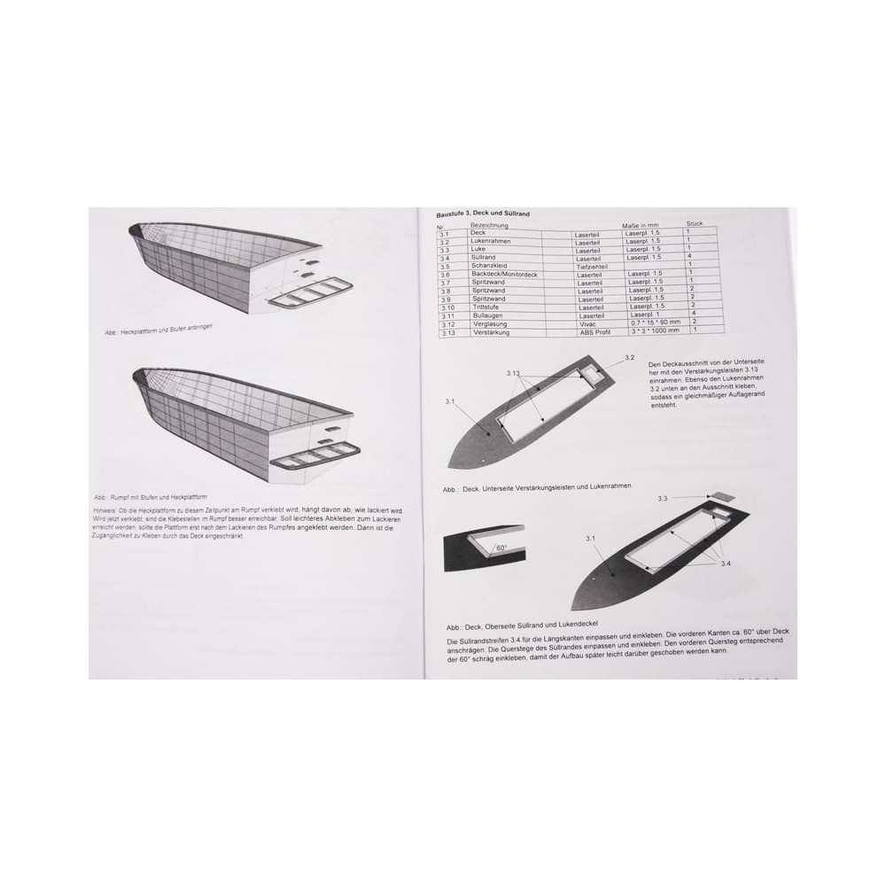 Távirányítós hajó RC készlet a ROMARIN-tól, FLB-1 tűzhajó készlet. FLB-1 modellhajó a Rajnán, tűzoltó és mentőszolgálat céljára. Tartalmaz műanyag hajótestet és fedélzeti és belső részeket, fa alkatrészeket, rajzot, hajócsavart, makett alkatrészeket és kis építési tartozékokat.