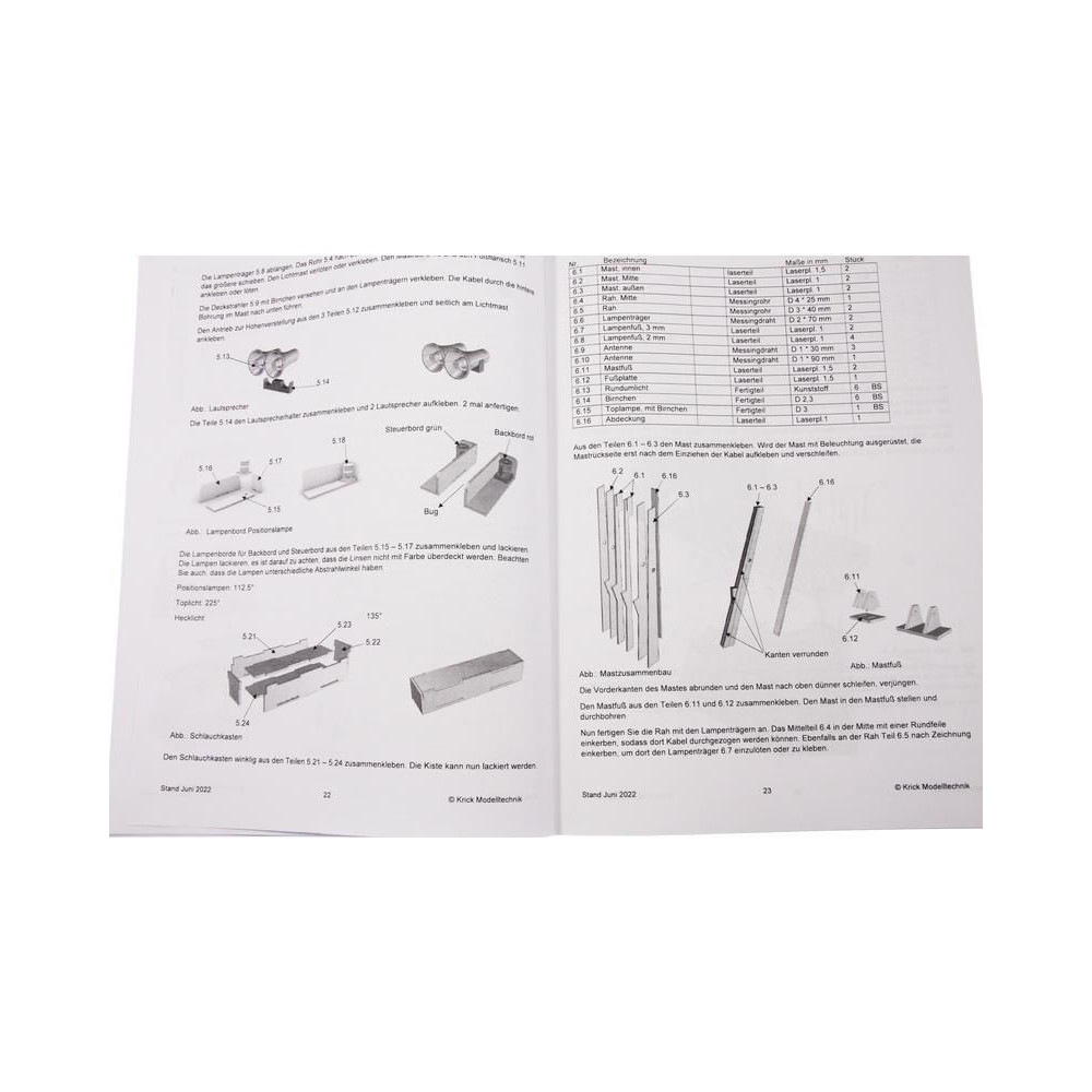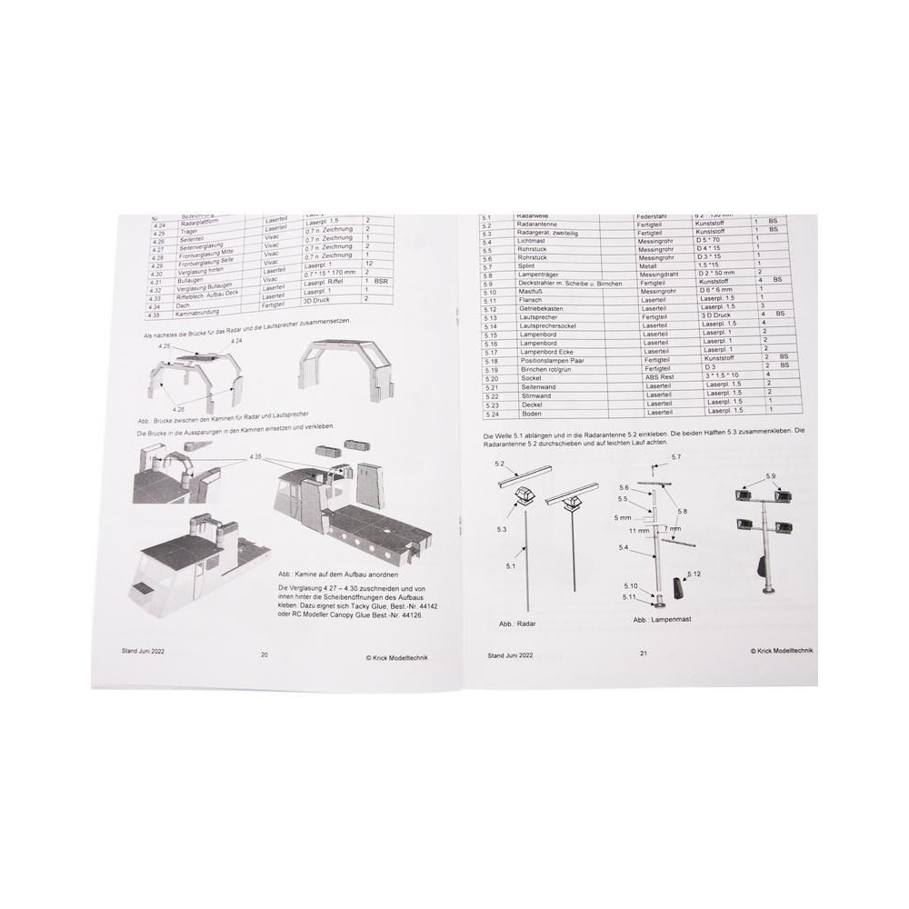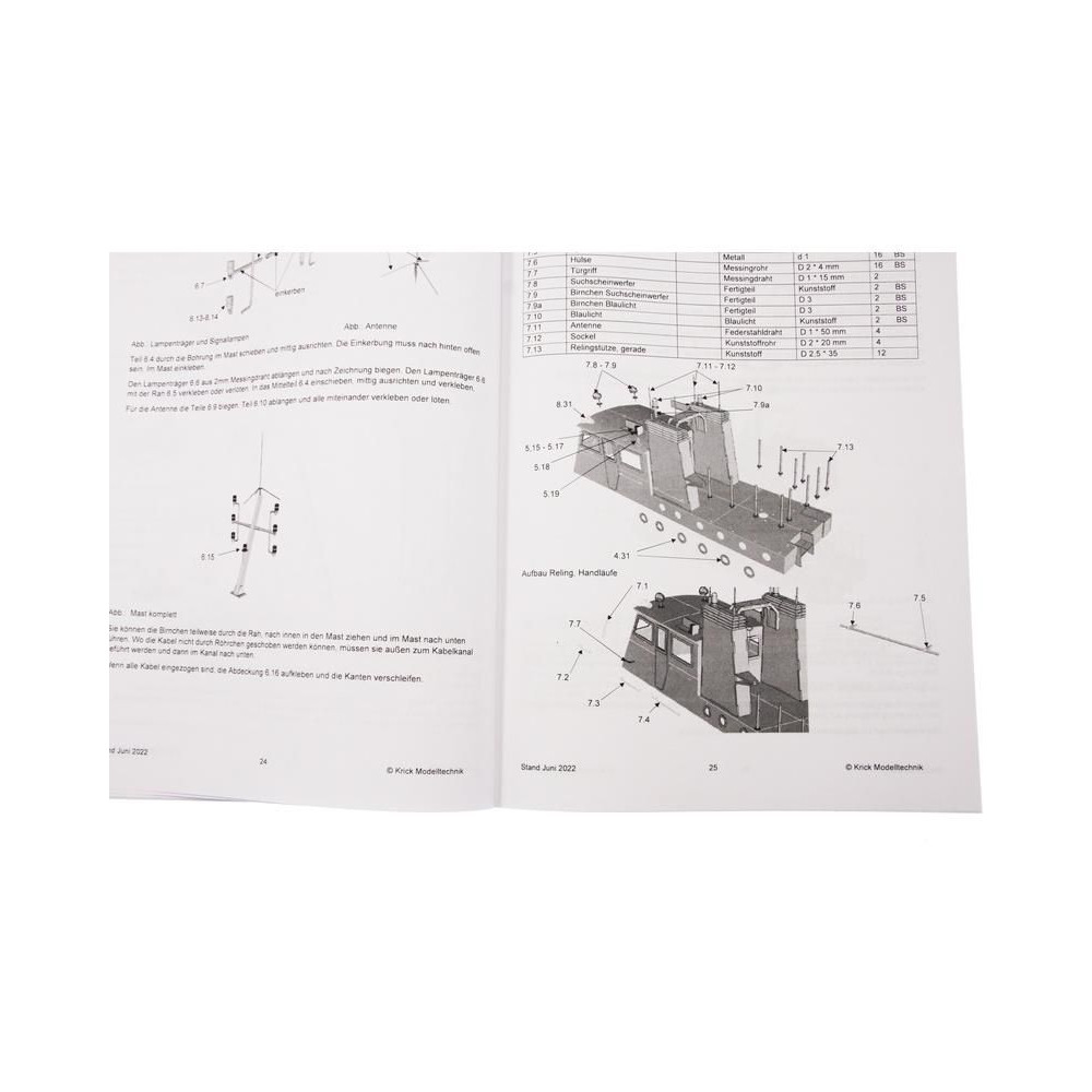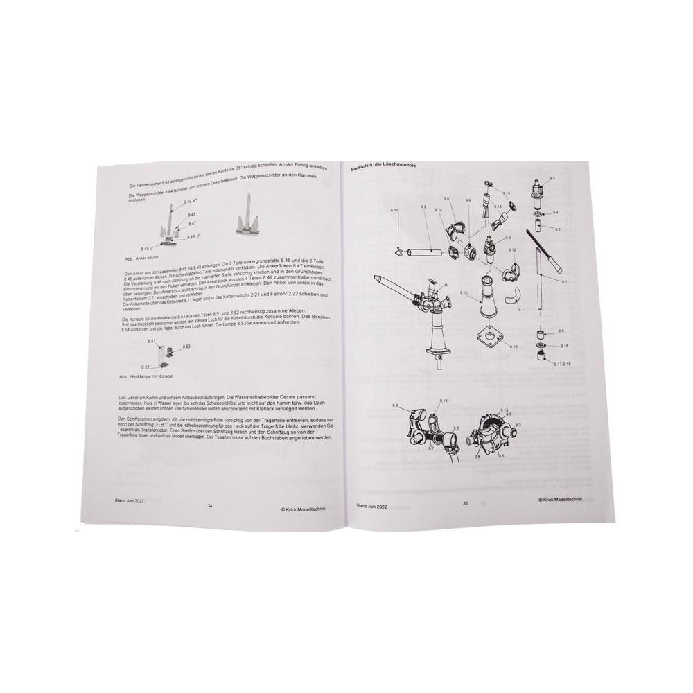 A készlet tartalmaz egy részletes kézikönyvet az építési folyamattal és az egyes részletek képeivel. A rajzok az összeállításokat és azok összeszerelését mutatják, beleértve a tartozékok összeszerelését is. A többnyelvű építési eljárás keretbe foglalja az egyes alkatrészek logikus összeszerelését.