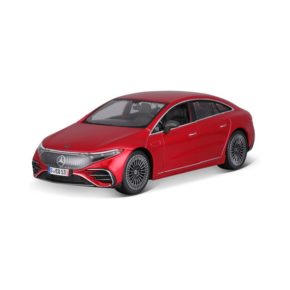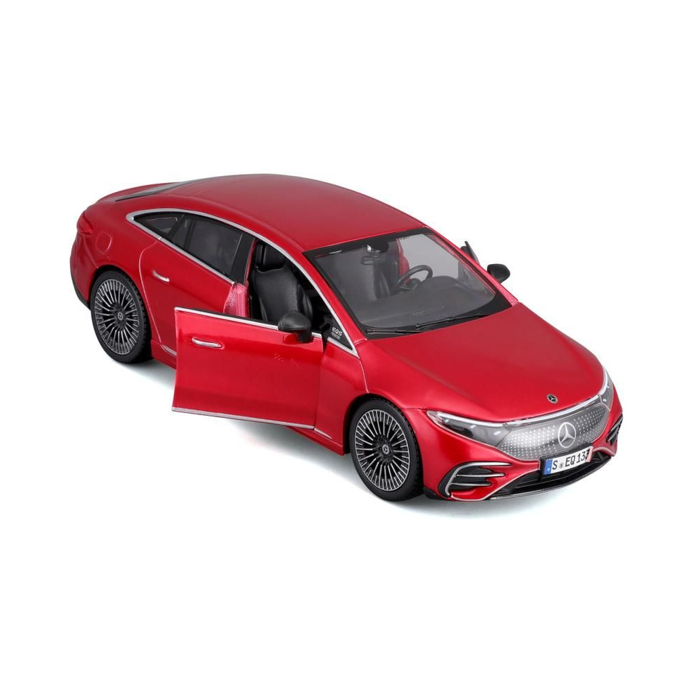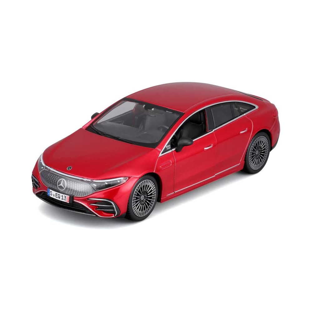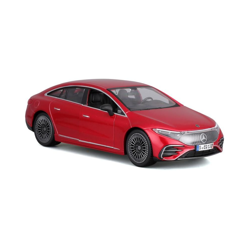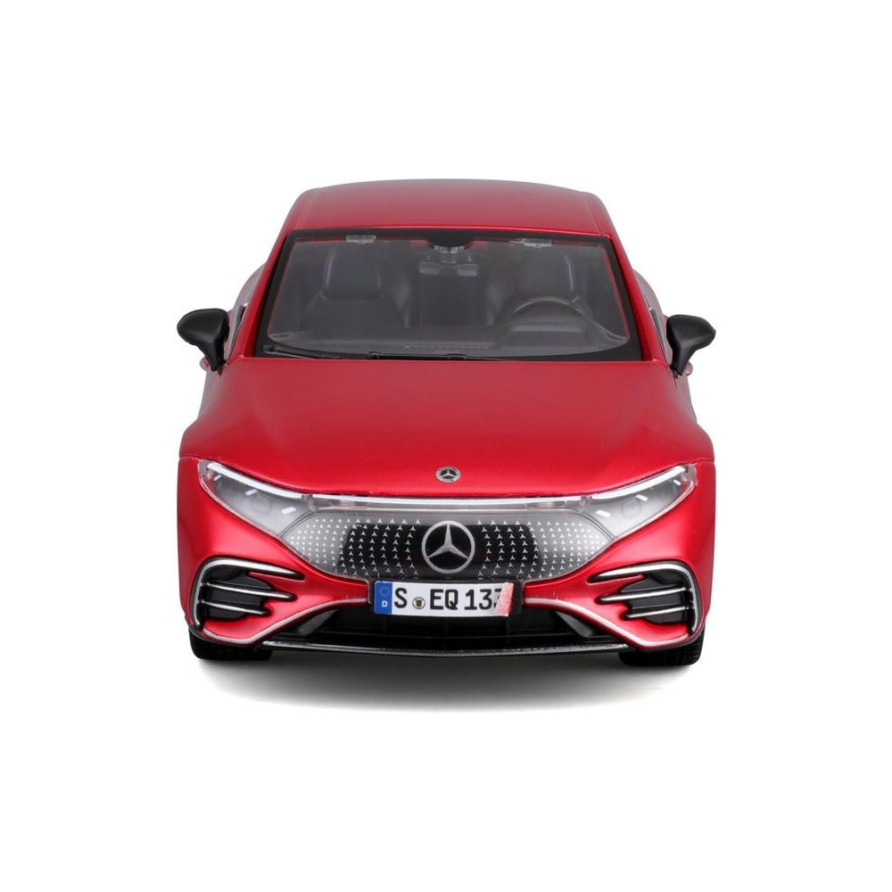 Fém modell autó 1:24 Maisto 39261 Kit Mercedes-EQ EQS nem csak gyűjtőknek. Nyitható ajtókkal és motorháztetővel rendelkezik. A modell Kit változatban összeszerelhető. A modell színe piros és kb. 17 cm nagy.