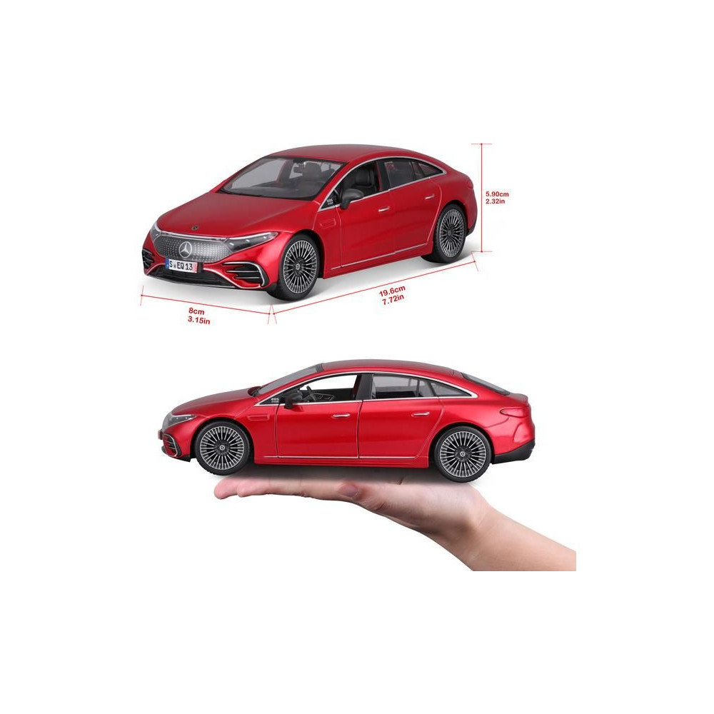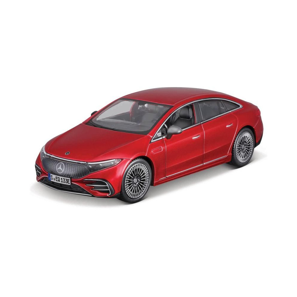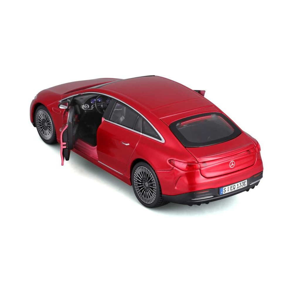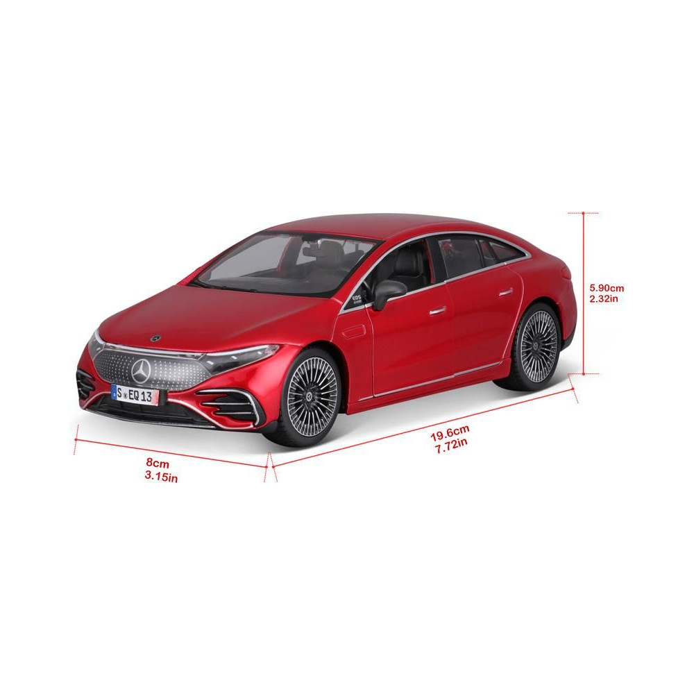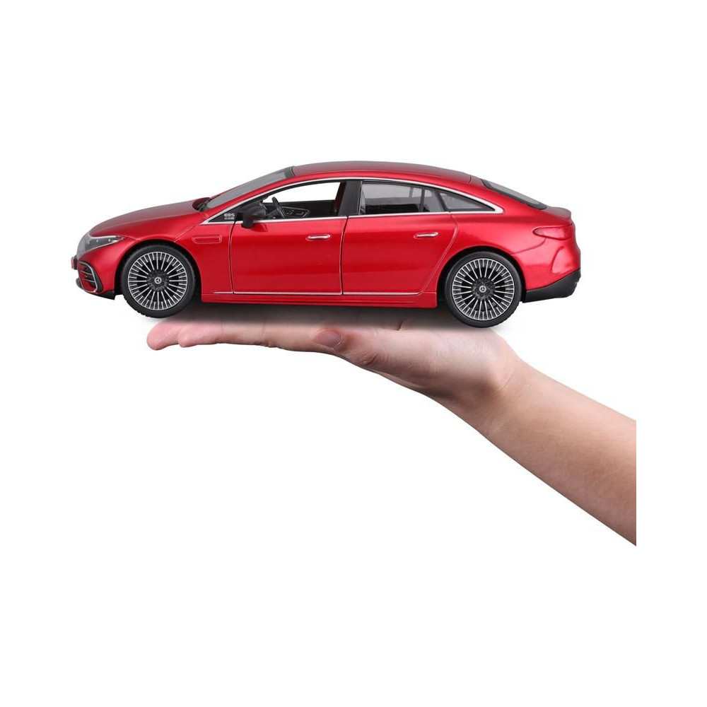 Fém modell autó 1:24 Maisto 39261 Kit Mercedes-EQ EQS nem csak gyűjtőknek. Nyitható ajtókkal és motorháztetővel rendelkezik. A modell Kit változatban összeszerelhető. A modell színe piros és kb. 17 cm nagy.