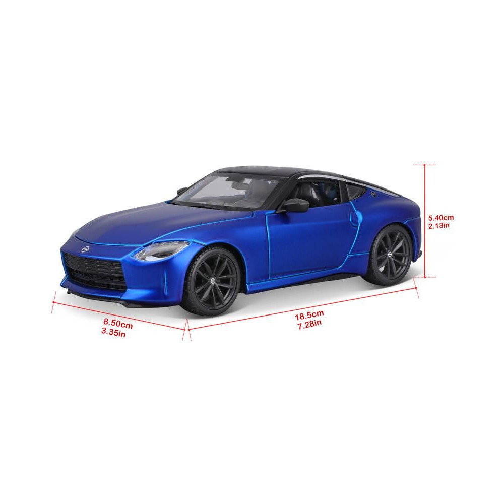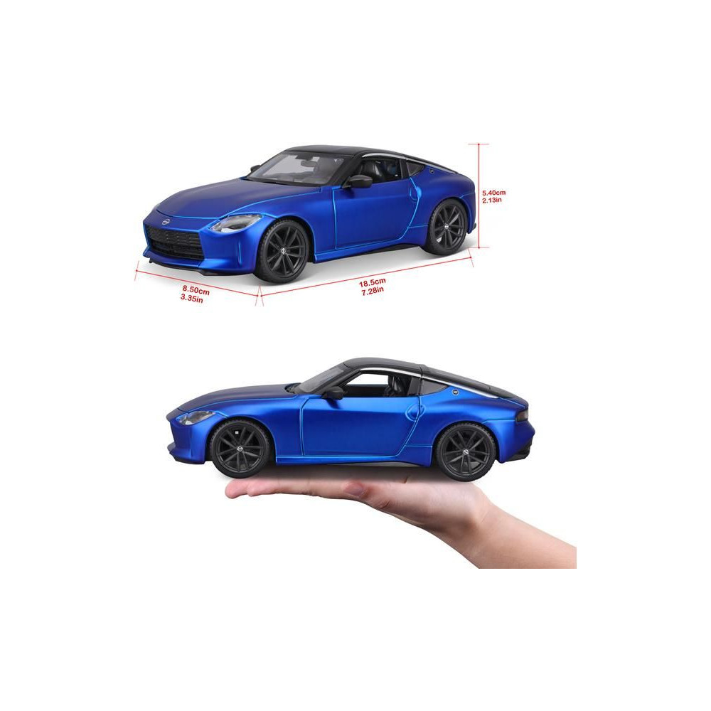 Fém modell autó 1:24 Maisto 39267 Kit Nissan Z 2023 SPAL nem csak gyűjtőknek. Nyitható ajtókkal és motorháztetővel rendelkezik. A modell Kit változatban összeszerelhető. A modell színe kék és körülbelül 17 cm nagy.