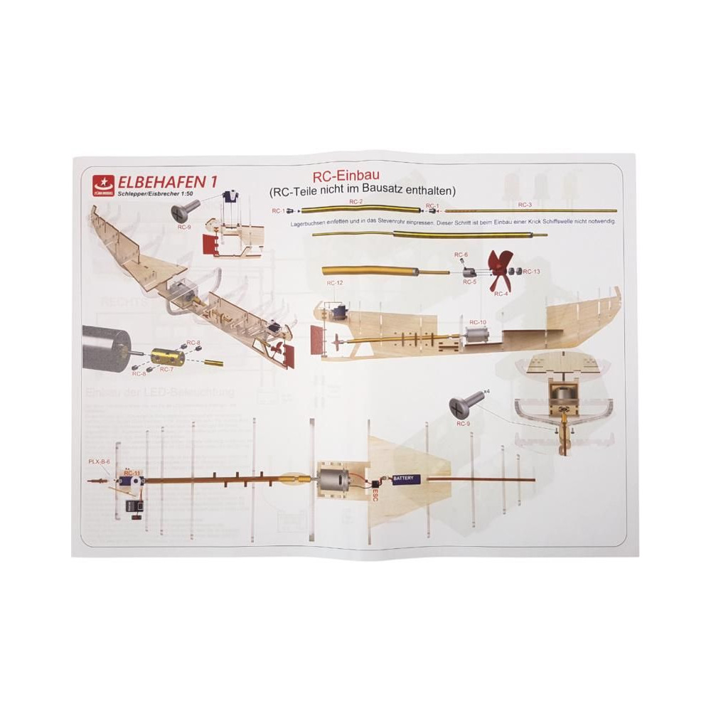 A készlet tartalmaz egy képes kézikönyvet, amely tartalmazza a hajótest, a felépítmények és a berendezések építésének eljárását, beleértve a hajtás és az elektronika telepítését is. Az összeszerelési részlegek, azok elkészítése, beleértve a makett részleteit is, a rajzokon láthatók.