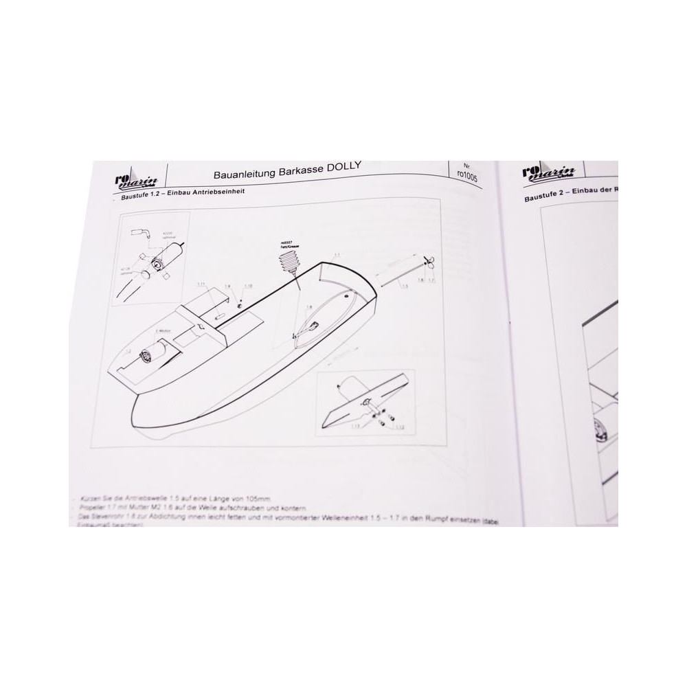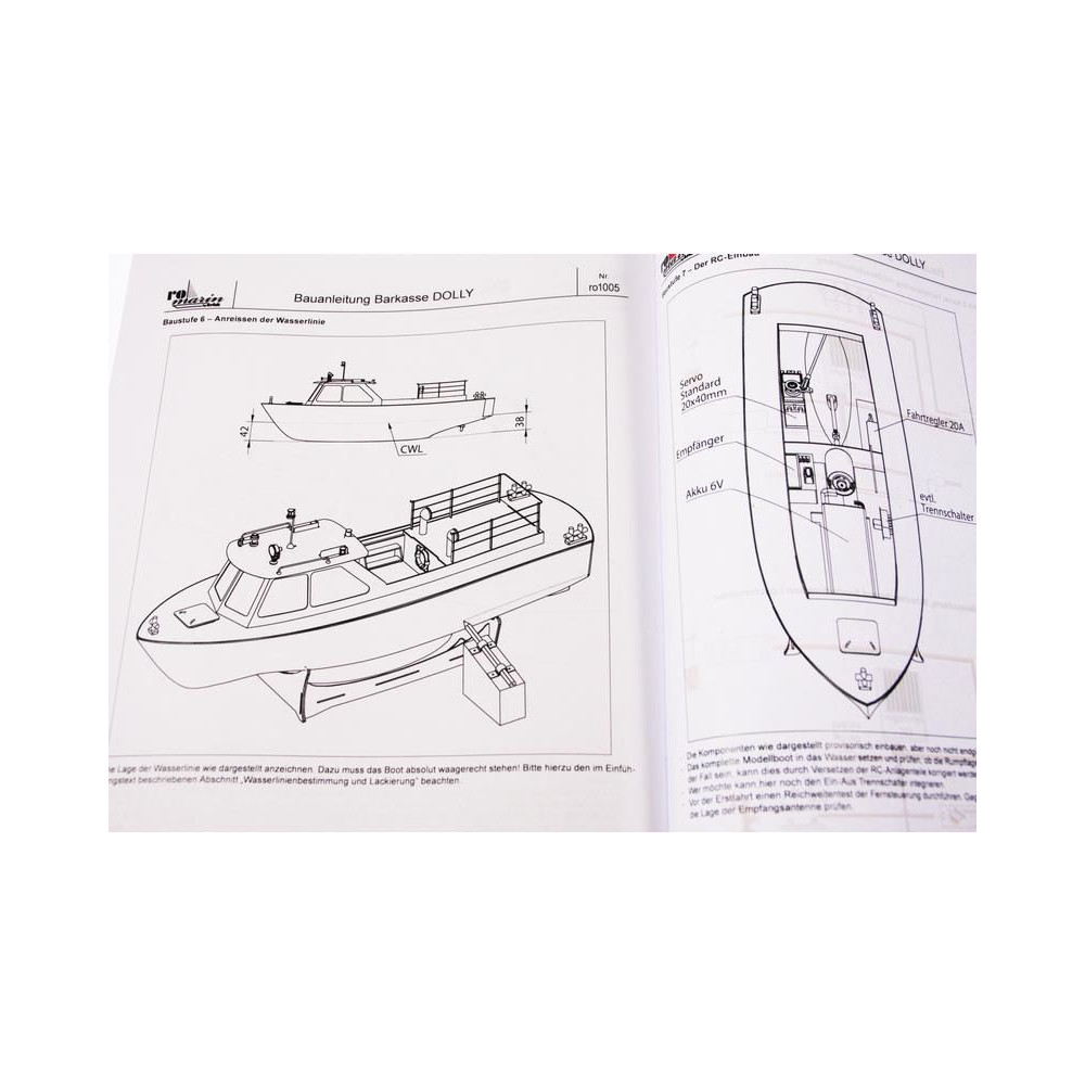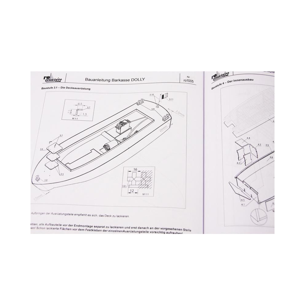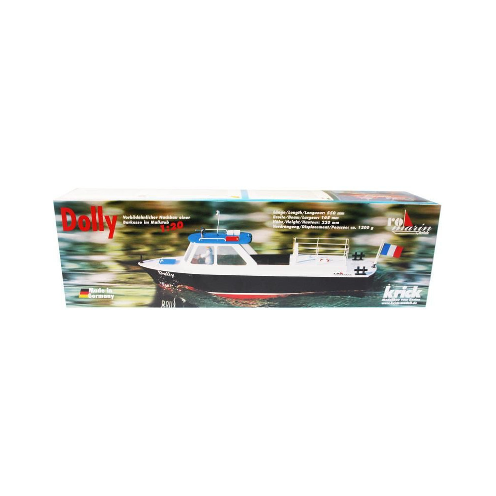 A ROMARIN RC hajó készlet, Dolly boat készlet olyan hajómodellezők számára készült, akik saját hajót szeretnének építeni. Tartalmaz műanyag hajótestet, fedélzeti és belső részeket, építőelemeket, átlátszó kabinrészt, kormánylapátot tartozékokkal, kis összeszerelési alkatrészeket és tartozékokat, használati utasítást. Motor nélkül.