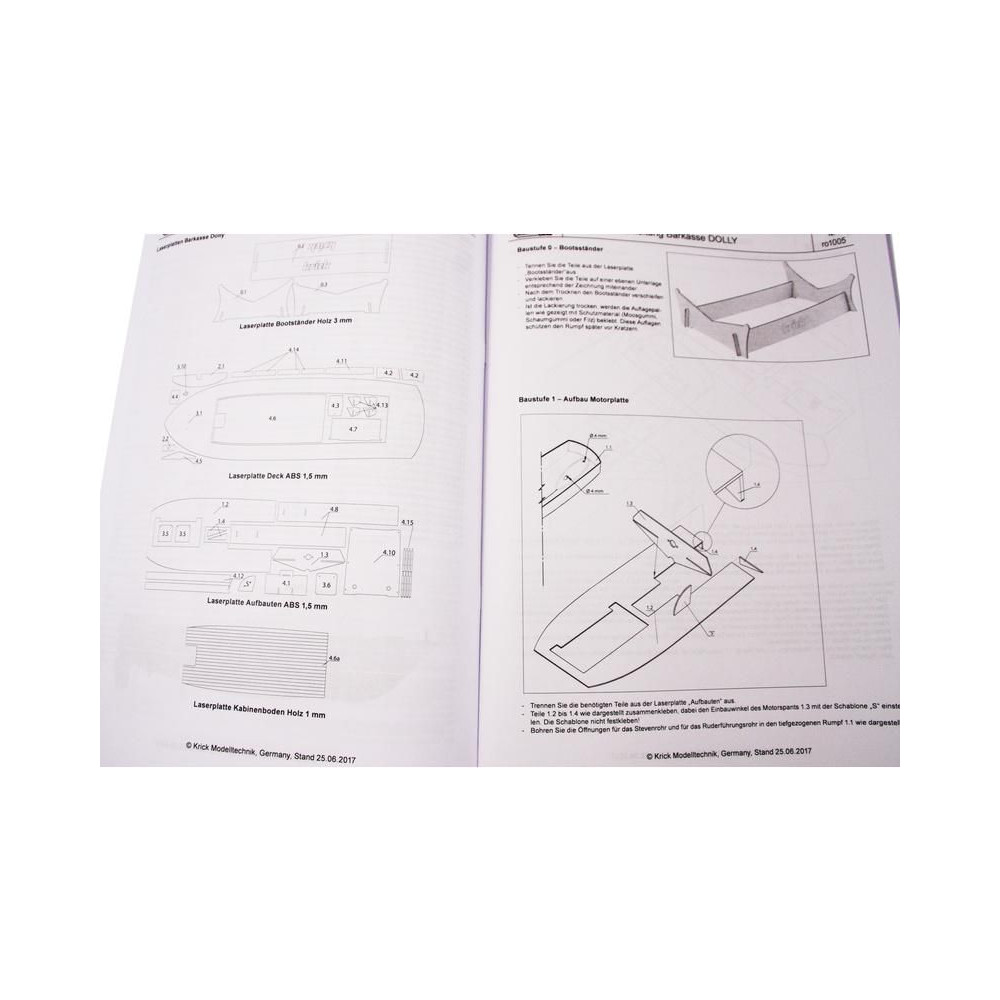 A készlet teljes modellrajzkészletet és összeszerelési eljárást tartalmaz. A többnyelvű építési eljárás keretbe foglalja az egyes alkatrészek logikus összeszerelését.
