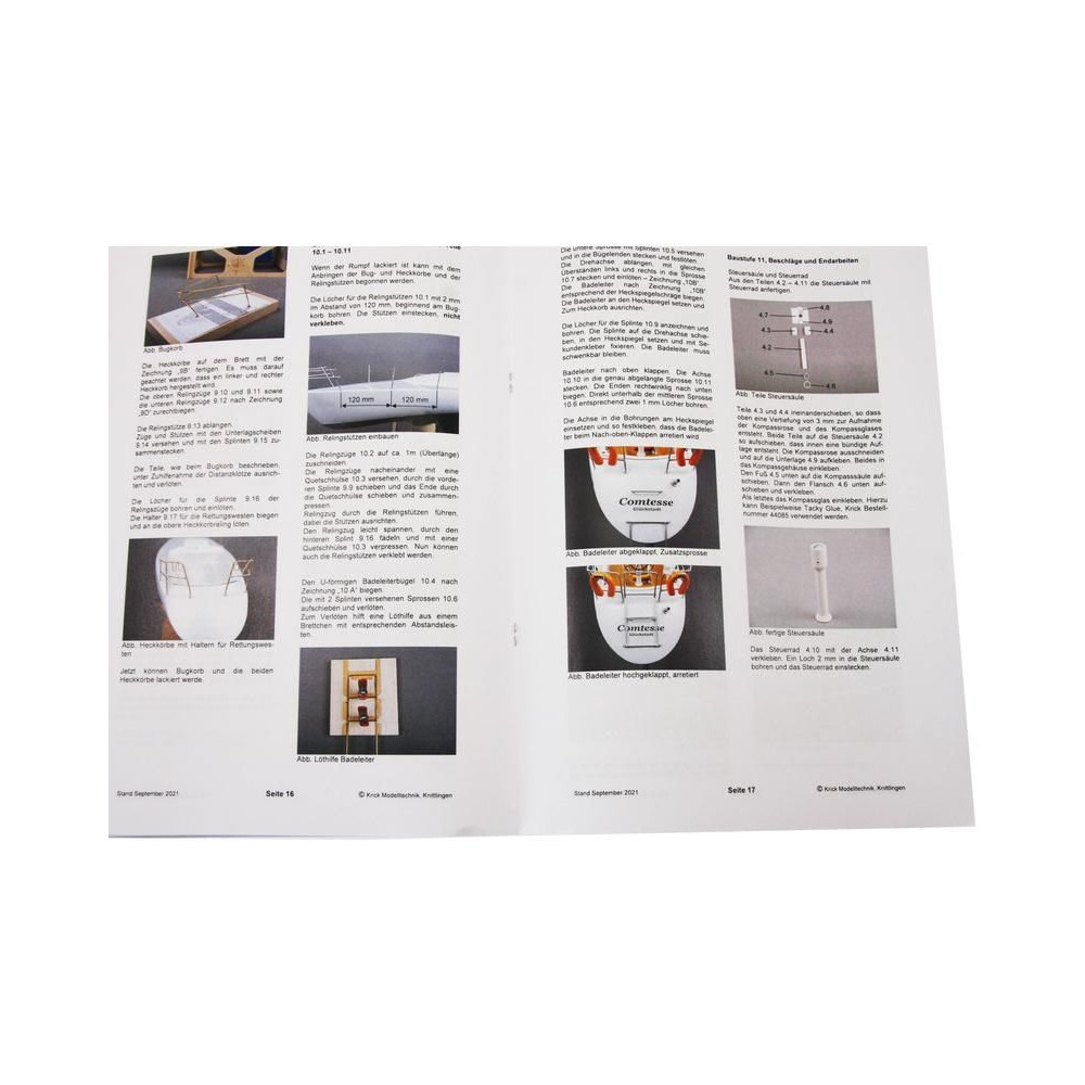 A készlet tartalmazza a modell teljes, 1:1 méretarányú rajzkészletét az egyes részletek képeivel. A méretarányos rajzok az összeszerelt részegységeket, azok összeszerelését mutatják. Egy többnyelvű építési útmutató keretezi az egyes alkatrészek logikus összeszerelését.