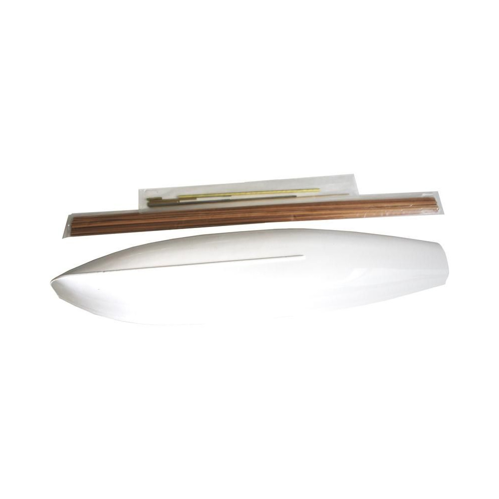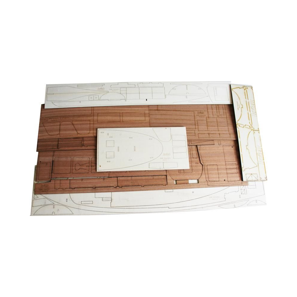 A doboz fedelét kinyitva egy ABS műanyagból készült törzsöntvényt, rétegelt lemezből készült fa alkatrészeket, egy sor öntvényt, zacskókba zárt apró alkatrészeket, egy rajzcsomagot és egy kézikönyvet találsz.