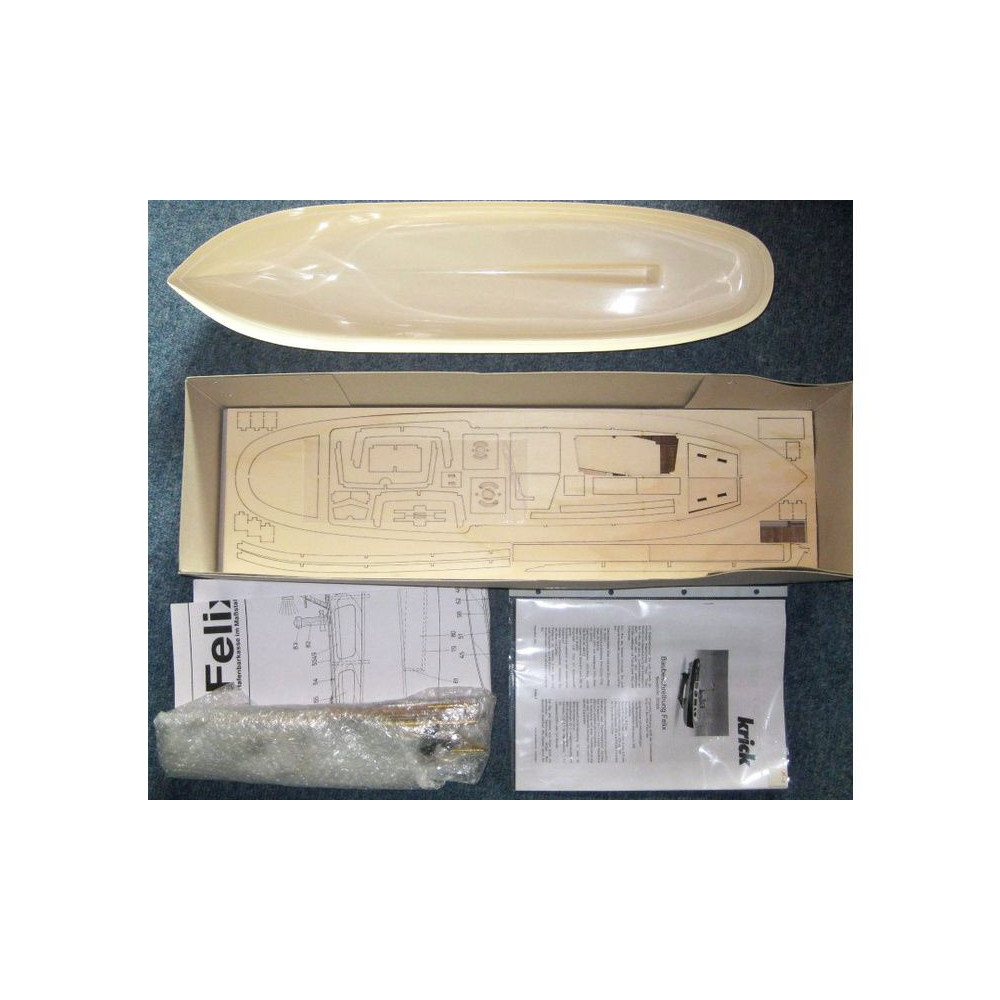 RC hajómodell készlet a Krick, Port boat Felix-től. A modellt kezdő hajómodellezők számára tervezték. Tartalmaz ABS műanyag hajótestet, fa fedélzeti és belső részeket, Speed 400 motort, hajócsavart tengellyel, kormánylapátot, kormánykereket, zászlót, makett alkatrészeket és apró kiegészítőket.