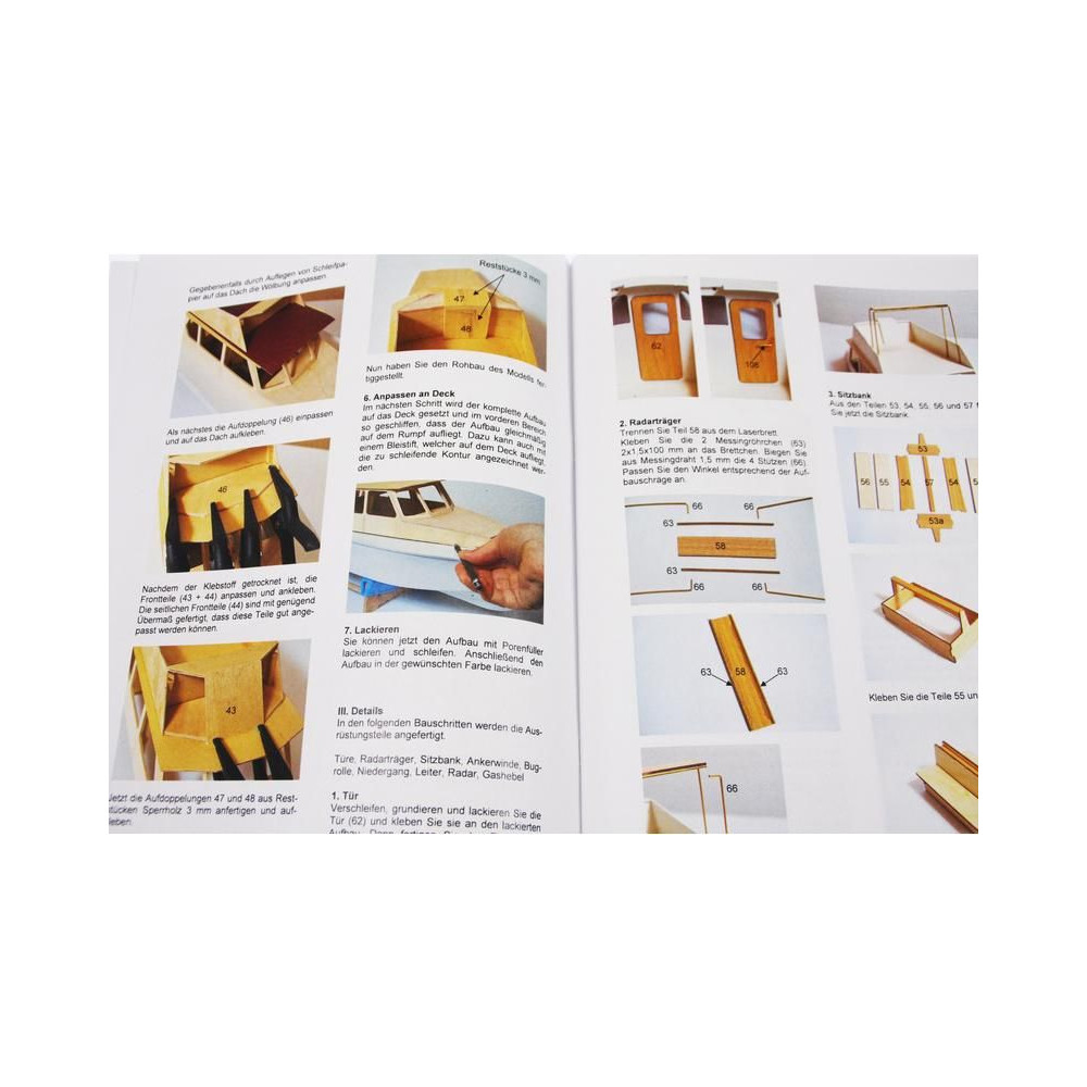 A készlet tartalmazza a modell teljes, 1:1 méretarányú rajzkészletét az egyes részletek képeivel. A méretarányos rajzok bemutatják a szerelvényeket, azok összeszerelését, beleértve az árbocokat és a gémeket, valamint a kötélzet megkötésének módját. A többnyelvű építési eljárás keretbe foglalja az egyes alkatrészek logikus összeszerelését.