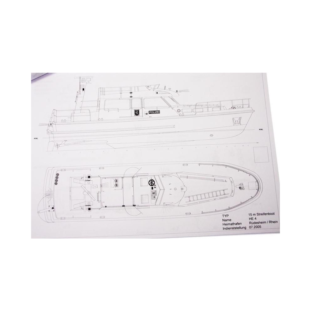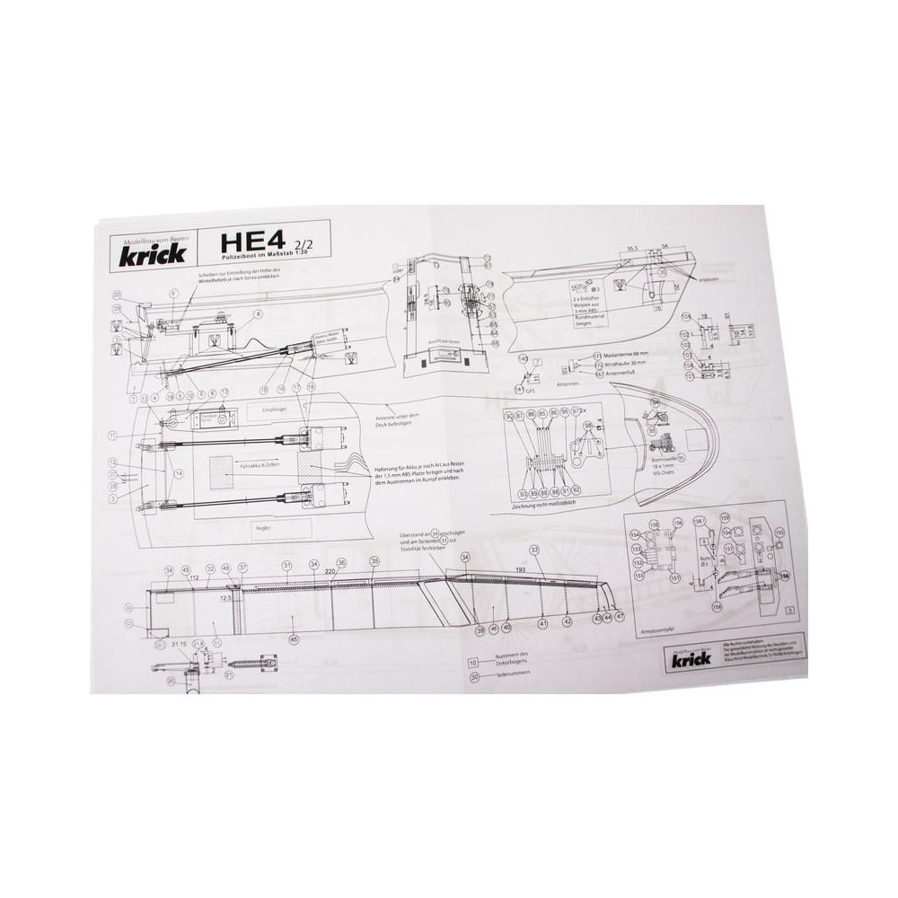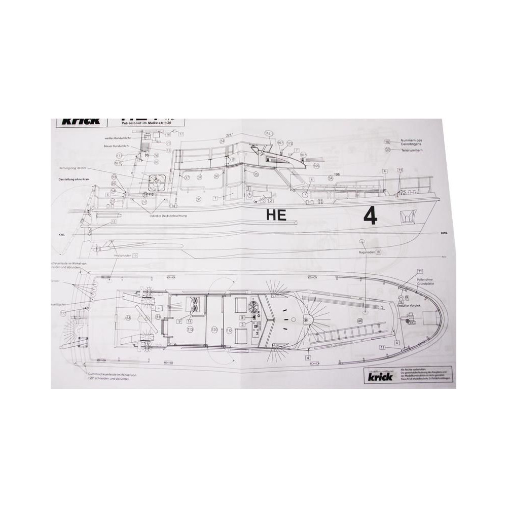 A Krick Police hajótest HE 4. A készlet lézerrel égetett műanyag és rétegeltlemez hálókat, makett...
