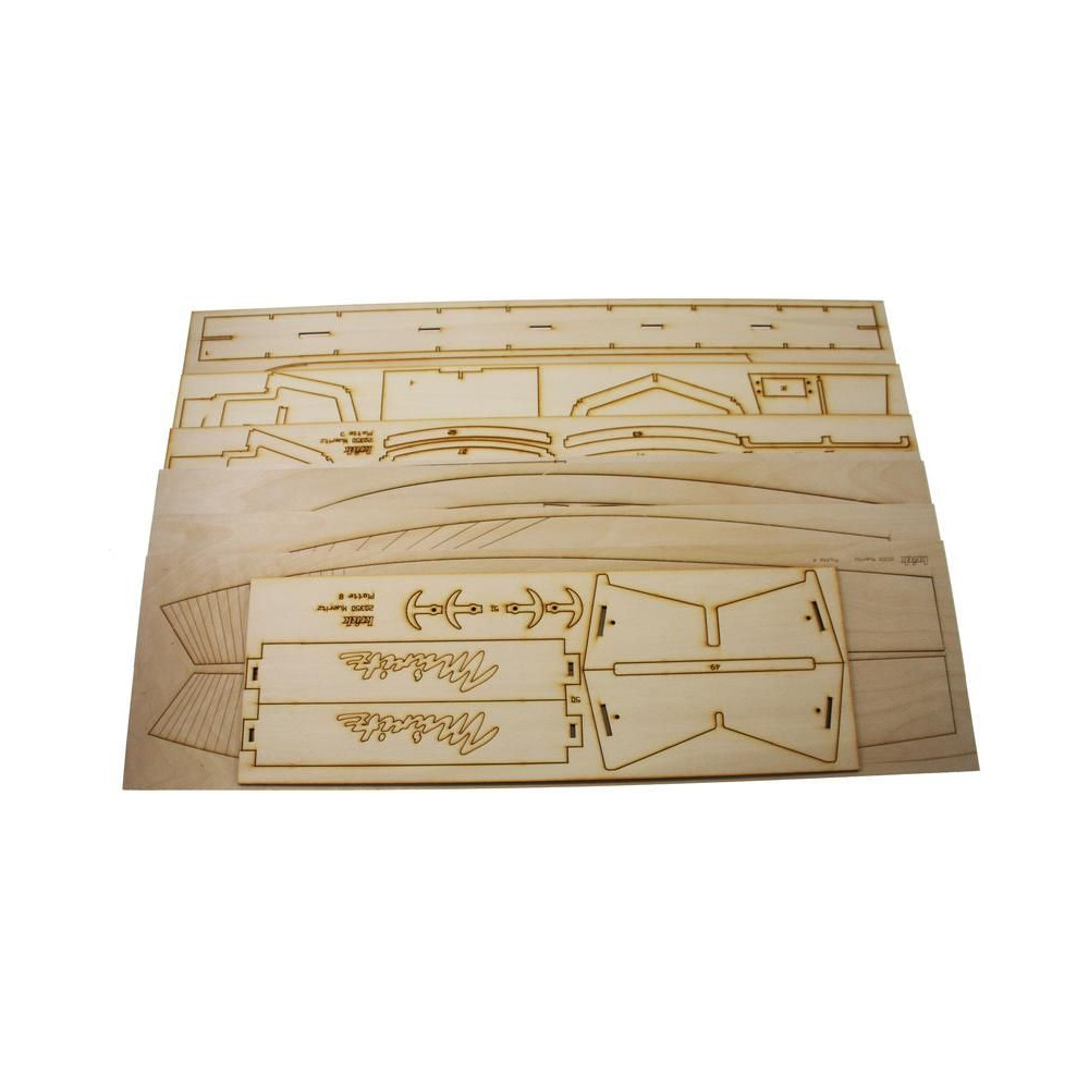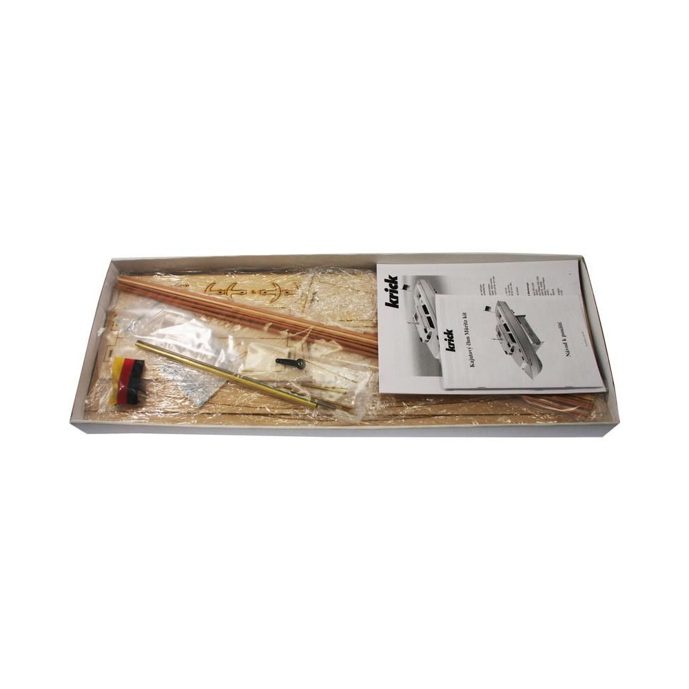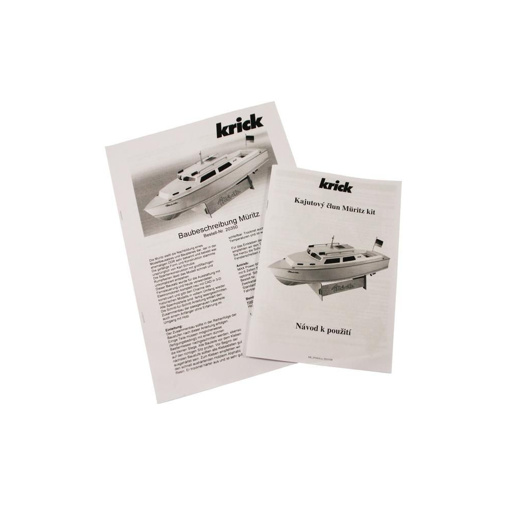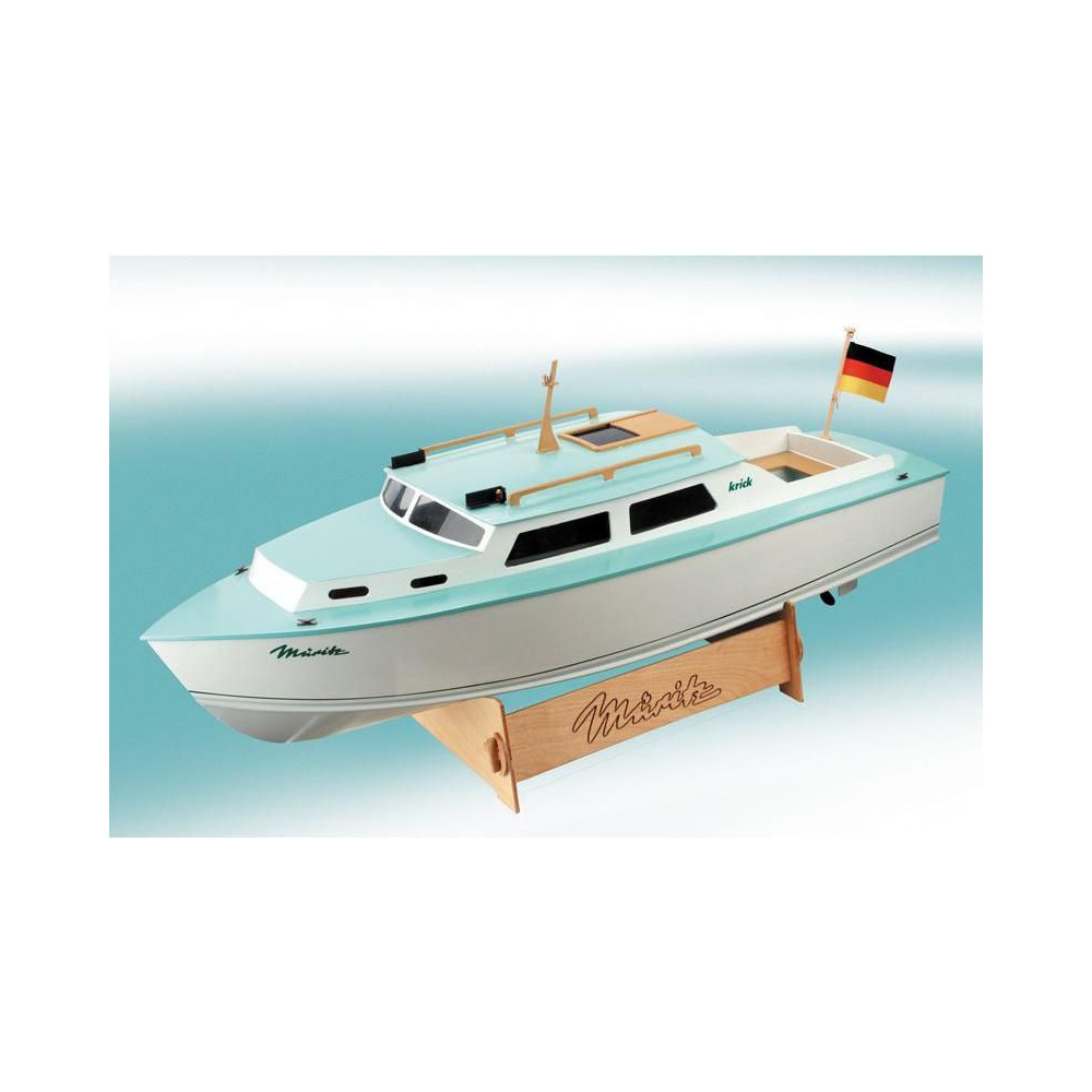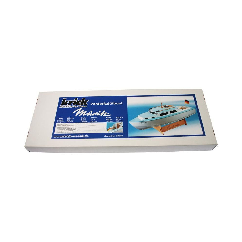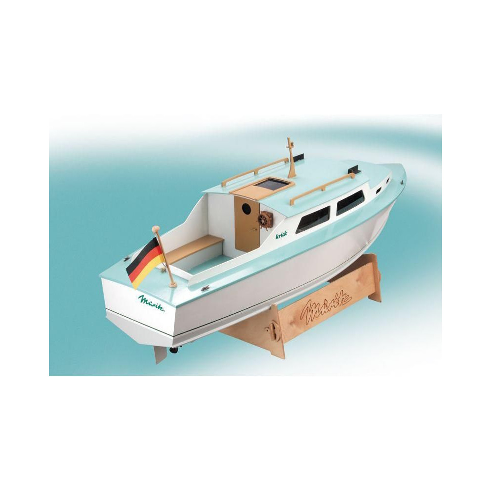 A Krick, Müritz kabinos hajómodell RC-készlete. A hajó félig méretarányos modellje, hossza 650 mm, szélessége 220 mm, részletes kivitelezés, klasszikus fa szerkezet rétegelt lemezből, kezdőknek is alkalmas.