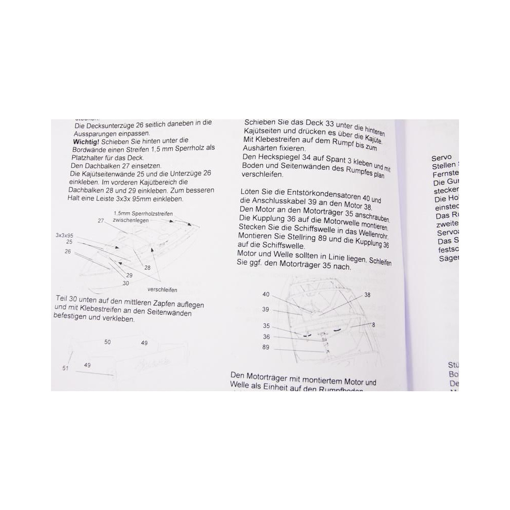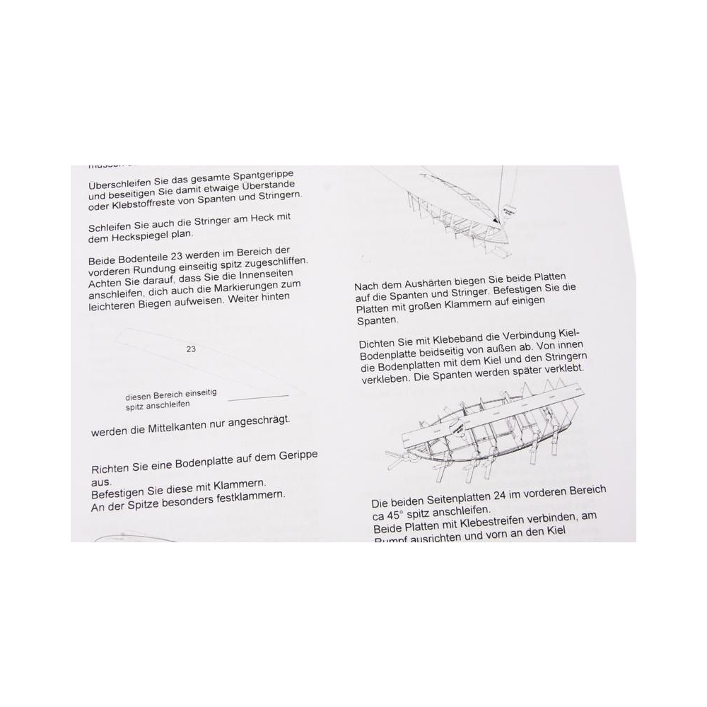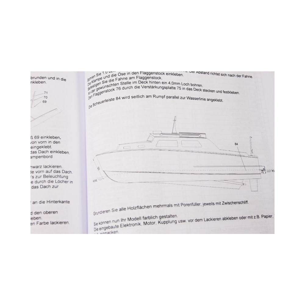 A készlet tartalmazza a modell teljes, 1:1 méretarányú rajzkészletét az egyes részletek képeivel. A méretarányos rajzok bemutatják a szerelvényeket, azok összeszerelését, beleértve az árbocokat és a gémeket, valamint a kötélzet megkötésének módját. A többnyelvű építési eljárás keretbe foglalja az egyes alkatrészek logikus összeszerelését.