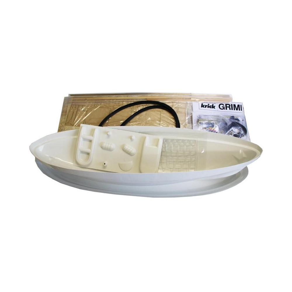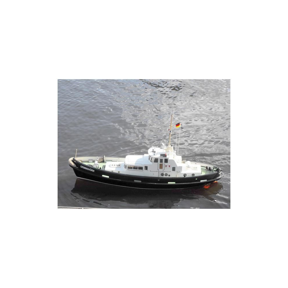 Gyönyörű RC készlet a Krick hajójáról, a Grimmershörn kikötői vontatóról. A modell haladó hajómodellezők számára készült, ABS műanyag hajótestet, fa fedélzeti és belső részeket, hajócsavart tengellyel, makett alkatrészeket és összeszerelési tartozékokat tartalmaz.