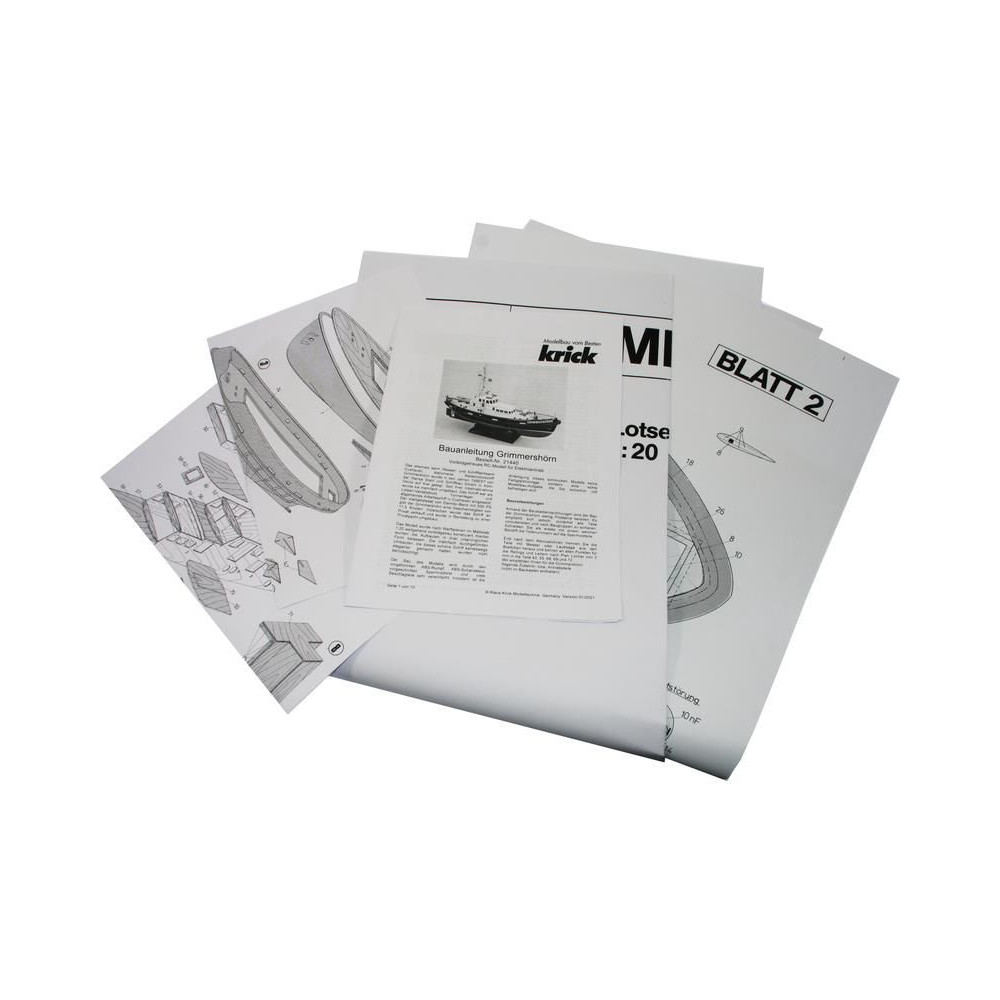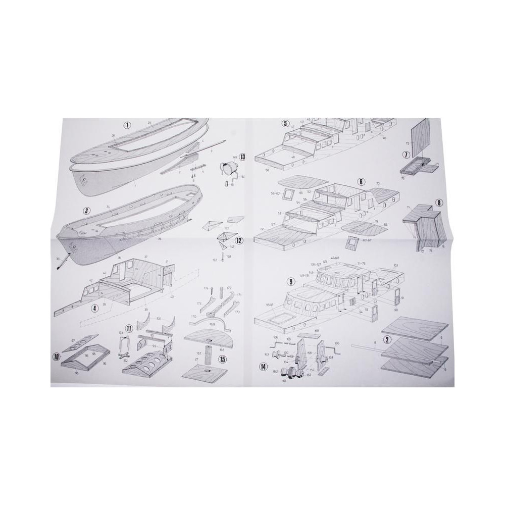 A készlet tartalmazza a modell teljes, 1:1 méretarányú rajzkészletét, az egyes részletek képeivel. A méretarányos rajzok a szerelvényeket és azok összeszerelését mutatják, beleértve az árbocokat és a gémeket, valamint a meghajtást. Egy többnyelvű építési eljárás keretezi az egyes alkatrészek logikus összeszerelését.