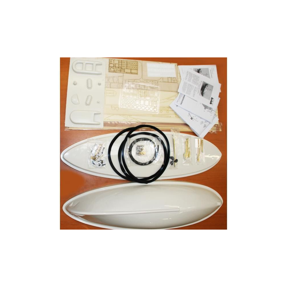 Gyönyörű RC készlet a Krick hajójáról, a Grimmershörn kikötői vontatóról. A modell haladó hajómodellezők számára készült. Tartalmaz ABS műanyag hajótestet, fa fedélzeti és belső részeket, hajócsavart tengellyel, makett alkatrészeket és összeszerelési tartozékokat.