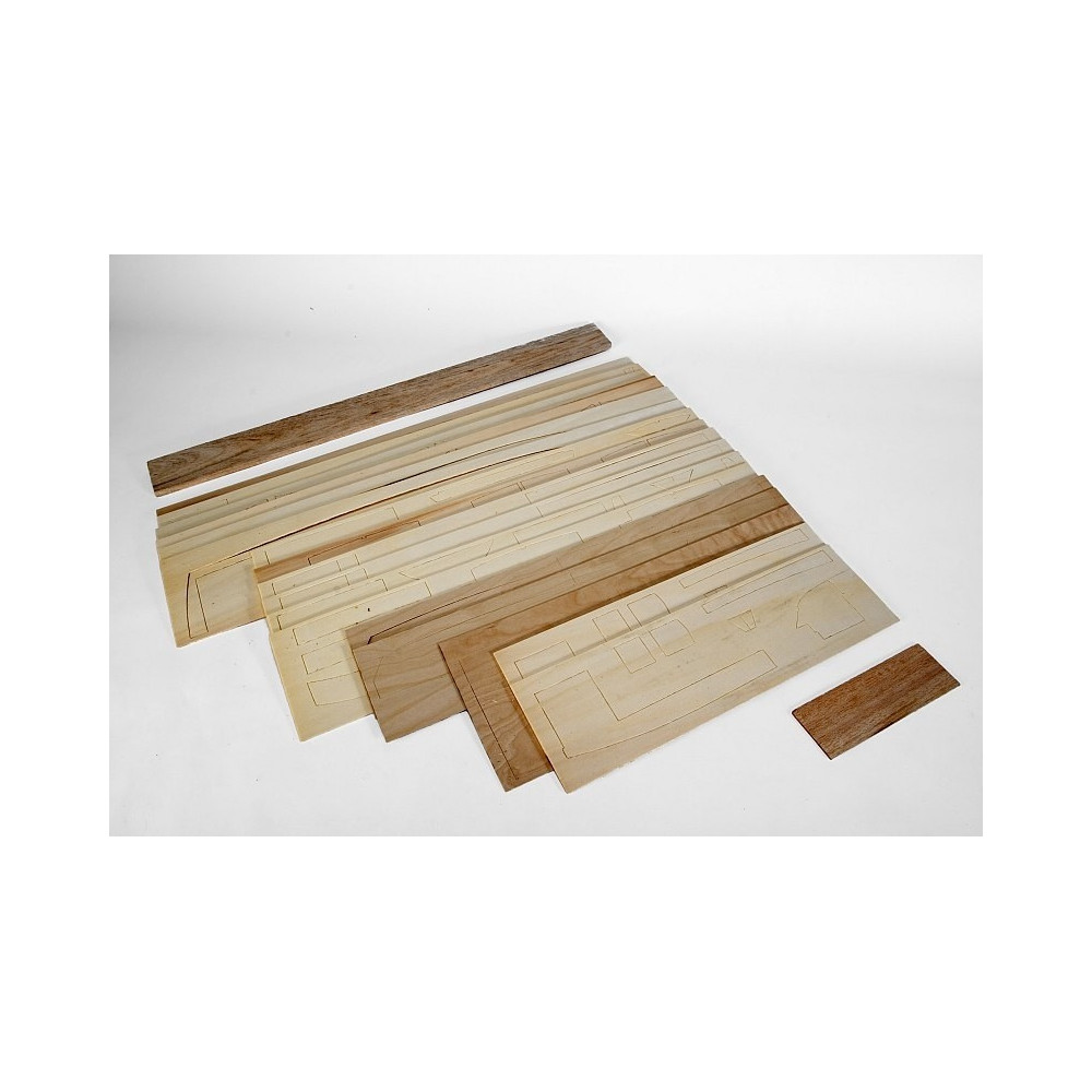 A készlet a következőket tartalmazza: Előre kivágott és lézerrel kivágott mahagóni fa, mahagóni vitorla, balsa vitorla, öntött fémalkatrészek és egyéb makett tartozékok, egy építési terv, amely tartalmazza a hajó háromdimenziós nézetét és perspektivikus rajzokat az egyes építési lépésekről, két lapotmatricák, útmutató az építéshez.