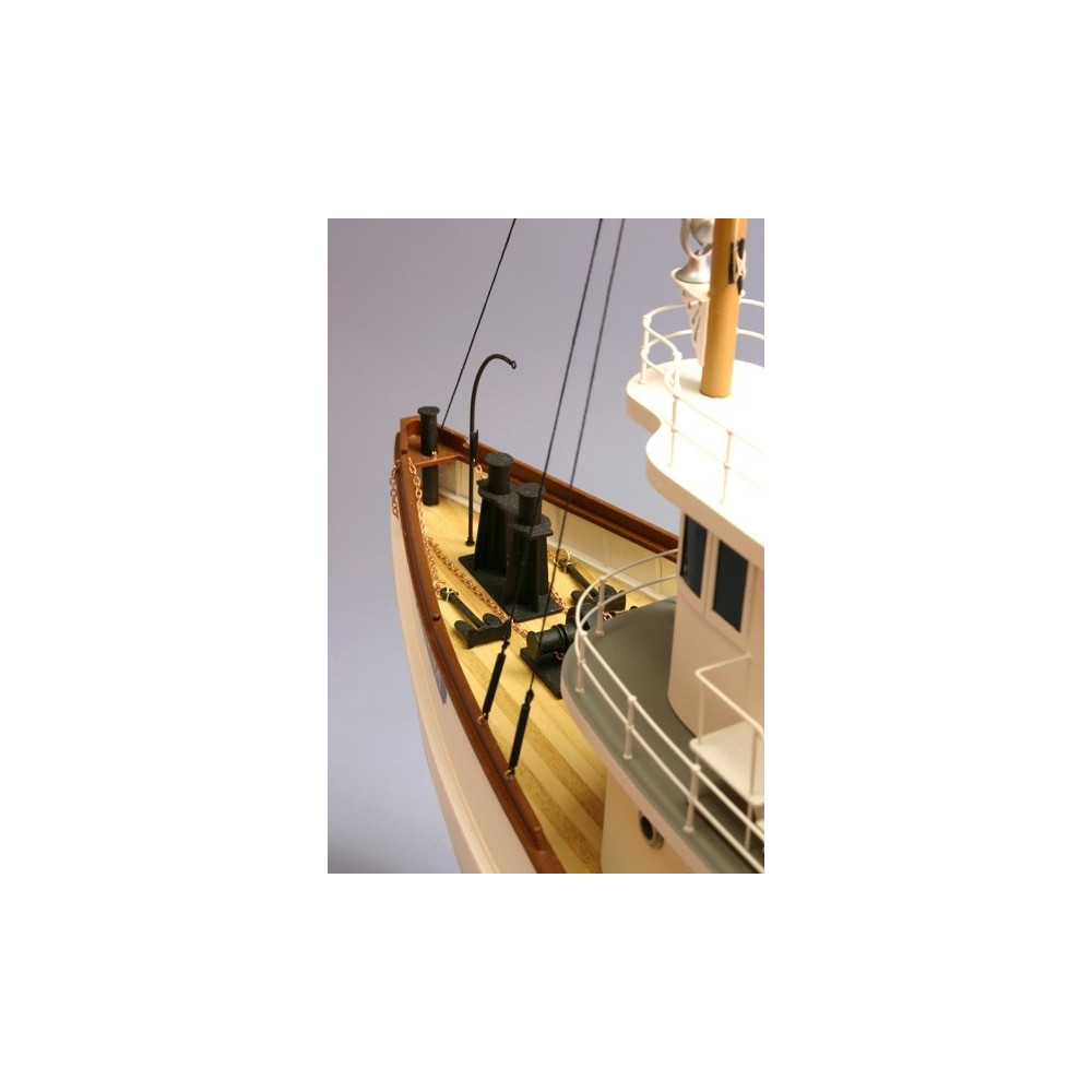 Tengerparti vontatóhajó készlet kiömlött villanymotoros meghajtású sorozatban középhaladó építők számára. A legtöbb alkatrész magas előmunkálatainak köszönhetően az építés nem különösebben igényes a szakértelem és a műhely felszereltsége szempontjából - de természetesen a gondos és türelmes munka elengedhetetlen a hajóépítésben a jó eredmény eléréséhez. A ragasztáshoz közepesen szilárduló ragasztóra, epoxira és műanyag modellek ragasztására alkalmas ragasztóra lesz szükséged. A tényleges építés a hajó külső megjelenését bemutató háromnézetes, életnagyságú rajz alapján történik. Az egyes építési lépések a hajó adott részének részletes felépítését bemutató perspektivikus rajzok alapján történnek, a kiválasztott kulcsfontosságú lépéseket és a tartozékok, például korlátok vagy létrák gyártását előre kinyomtatott 1:1 méretarányú sablonok segítik.