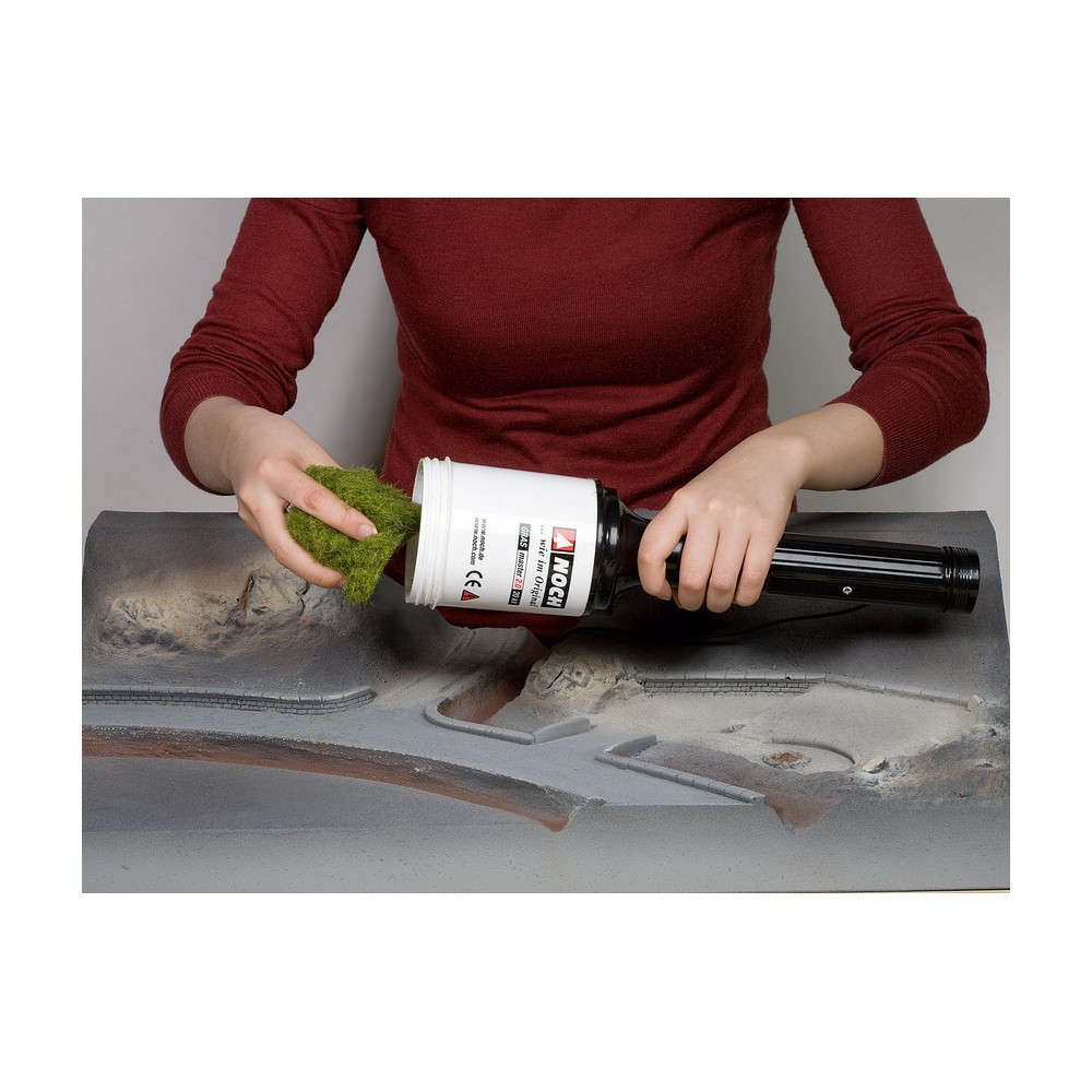 A statikus fűfelhordó új változata. A tartályban lévő füvet 2.000 V elektrosztatikus feszültséggel töltik fel. Ez lehetővé teszi, hogy az előzetesen előkészített, ragasztóval bevont felületen maradjon, és a ragasztó megszáradásakor valósághű modellpázsitot hozzon létre.