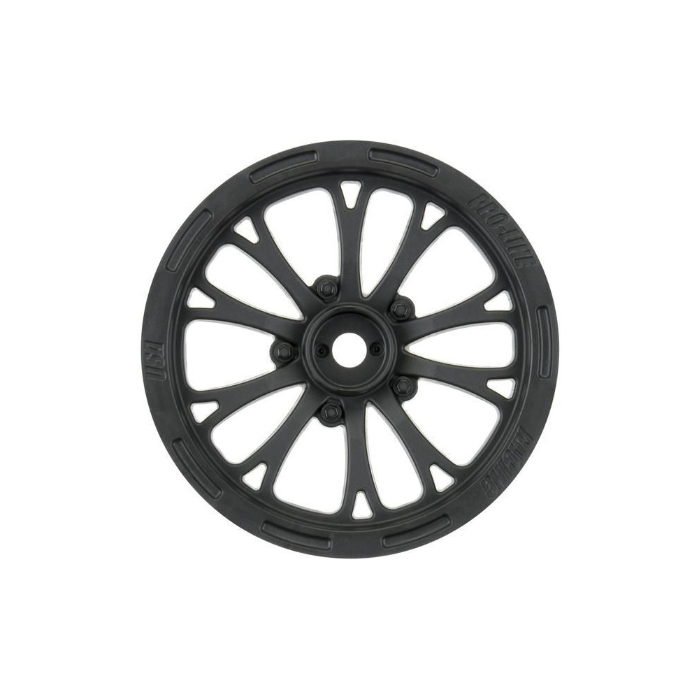 Speciálisan kifejlesztett tárcsák RC dragster versenyzéshez. Egyedülálló alacsony profilú kialakítás keskeny küllőkkel. A tárcsák alkalmasak a Pro-Line Hoosier Drag 2,2" gumiabroncsok (PRO10158203) felszerelésére.
