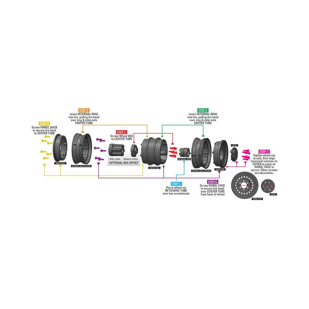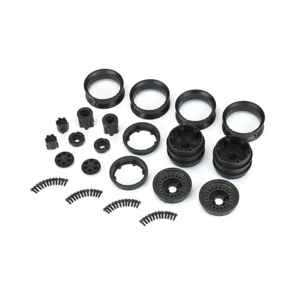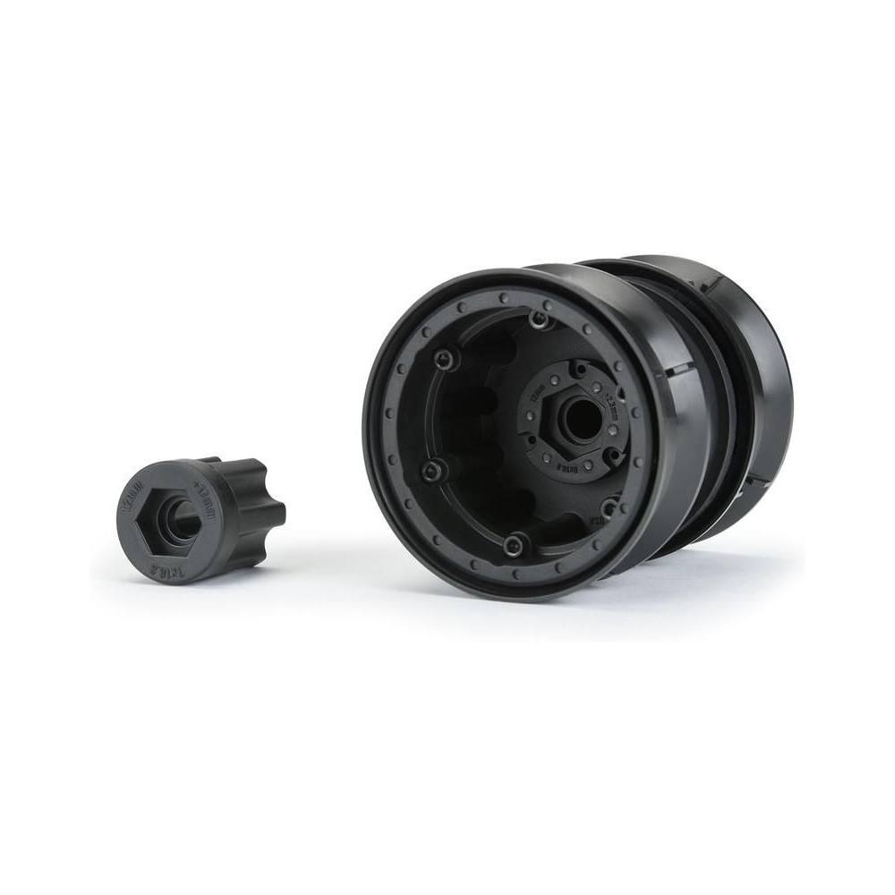 A Carbine kettős tárcsa tökéletesen illeszkedik katonai stílusú RC modelljéhez vagy extrém terepjárójához. A tárcsák moduláris kialakításúak, ami azt jelenti, hogy szabadon kombinálhatod őket. Használhatsz csak egy tárcsát, kombinálhatsz kettőt, vagy akár többet is, ha további darabokat vásárolsz. A mellékelt anyafedél két csavarral rögzíthető, és teljessé teszi a masszív megjelenést. A tárcsákra négy szabványos Pro-Line 1,9"-os gumiabroncs szerelhető. Tartalmaz egy adapterhüvelyt keskeny és széles eltolással, egyenes és portáltengelyekhez egyaránt.