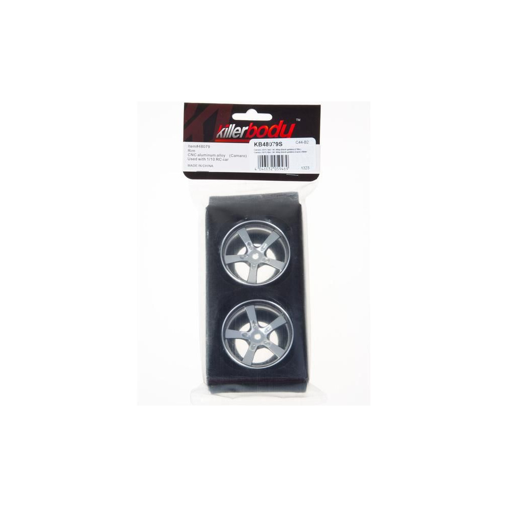 Tuning alumínium kerekek a Killerbody-tól 1:10 RC autó modellekhez. A kerekek alumíniumból készültek, ezüst színűek és fekete felnikkel rendelkeznek. Licencelt 2011-es Camaro dizájn. A csomag 2 db tárcsát tartalmaz.
