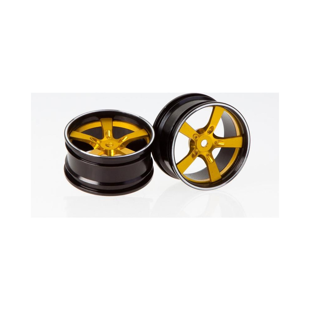 Killerbody alumínium tuningtárcsák RC autómodellekhez 1:10 méretarányban. A tárcsák alumíniumból készültek, arany színűek és fekete pereműek. Engedéllyel rendelkező 2011-es Camaro dizájn. A csomag 2 tárcsát tartalmaz.