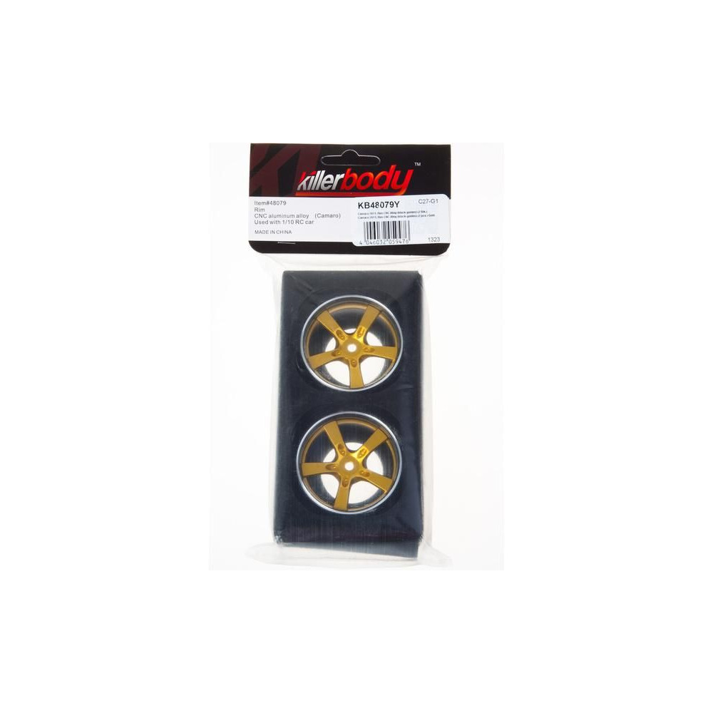 A Killerbody tuning alumínium tárcsákat kínál 1:10-es RC autómodellekhez. A tárcsák a 2011-es Camaro arany küllős dizájnját követik, fekete peremmel. A tárcsa mérete ø 52 x 26 mm, a meghajtó egy 12 mm-es hatszögletű, 18 mm-es eltolással. A csomag 2 darabot tartalmaz.