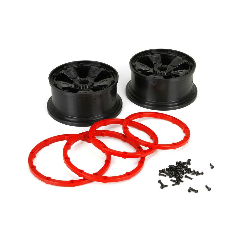 Tartalék alkatrész RC modell autókhoz Losi Desert Buggy XL: keréktárcsa gyűrűvel fekete (2 db)
