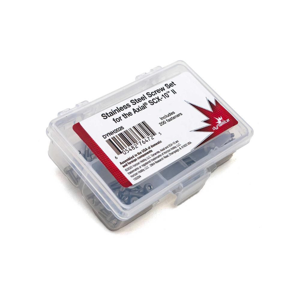 Dinamit rozsdamentes acél csavarok és anyák készlete Axial RC autómodellekhez SCX10 II alvázon.