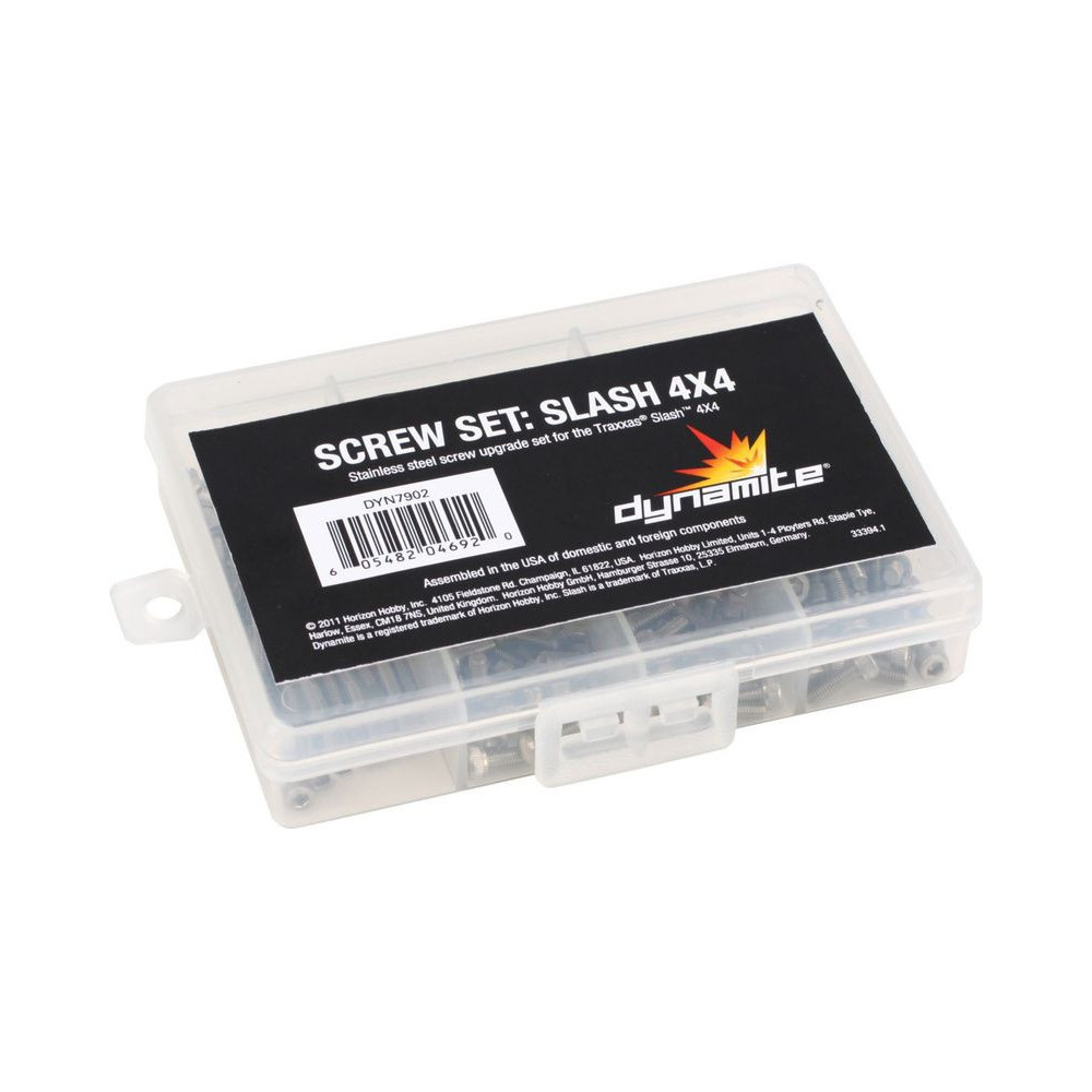 Dinamit 187 darab rozsdamentes acél csavarból, anyából és alátétből álló készlet Traxxas Slash 1:10 4x4 RC autó modellekhez. Anyag - rozsdamentes acél T-304 (CSN 17 240).
