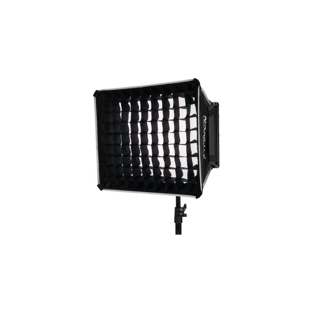 Nanlite flap és softbox készlet a MixPad II 27C RGBWW LED panelfényhez. A softbox a lámpatest elülső részén lévő szárnyak fölé szerelhető, hogy lágyítsa a fénykibocsátást. A könnyű tárolás és szállítás érdekében laposan összecsukható, és tartalmaz egy szövetrácsot.