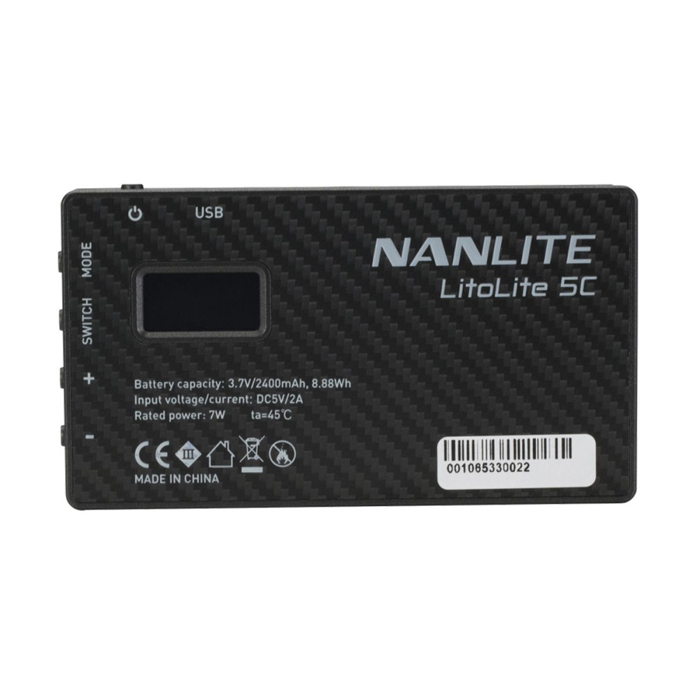A LitoLite 5C egy kompakt LED-es fénypanel beépített Li-Ion akkumulátorral, USB-C töltéssel, változtatható fényerővel, állítható színhőmérséklettel 2700K és 7500K között, zöldtől magenta színváltással, 360°-os árnyékszabályozás 100 színtelítettségi szint beállításával és 15 előre programozott, állítható speciális fényhatással.