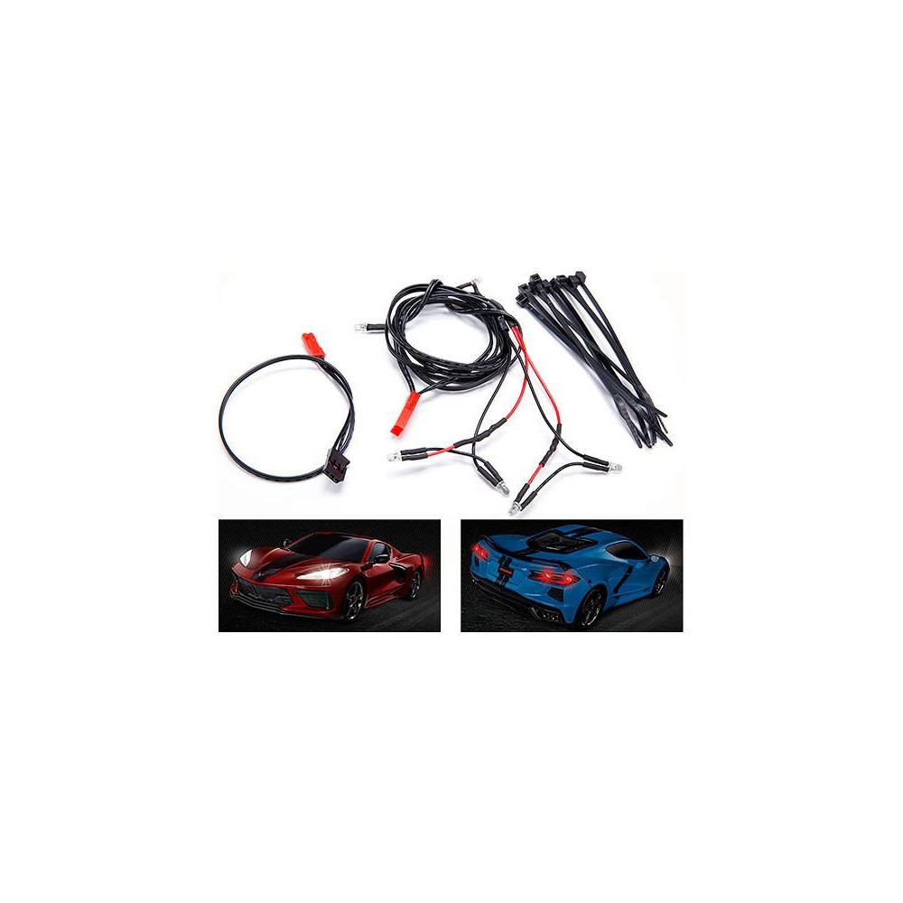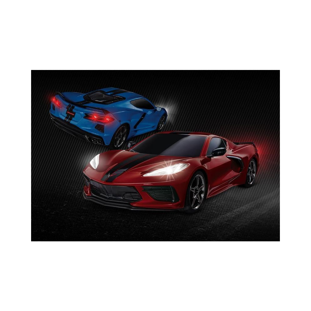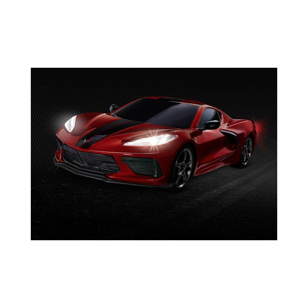 LED-es világításkészlet a lélegzetelállító vezetéshez nappal és éjszaka. Hangsúlyozza a már amúgy is gyönyörűen megformált és részletesen kidolgozott Traxxas Chevrolet Corvette Stingray 1:10 karosszéria megjelenését. Ez a világítás igazi gyöngyszemmé varázsolja modelljét. A nagy fényerejű LED-ek nem csak látványosak, de erőteljes fényáradatot is biztosítanak. A készlet beszerelése egyszerű, csak szerelje be a diódákat az előkészített fényszórókba, és csatlakoztassa a csatlakozót a vevőegységbe, amelyről a világítás kap áramot.