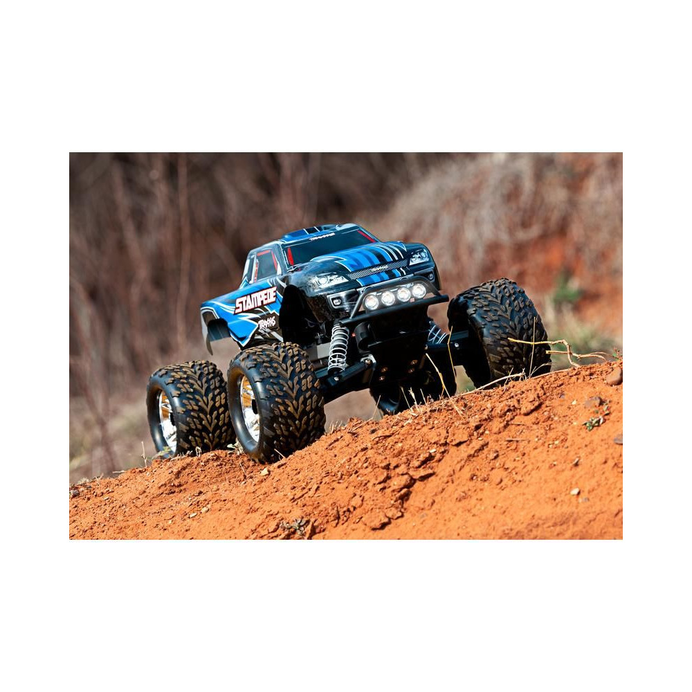 Teljes 2WD Stampede LED-es világító készlet, lélegzetelállító vezetéshez nappal és éjszaka. Ez a világítás igazi gyöngyszemmé varázsolja modelljét. A nagy fényerejű LED-ek nem csak látványosak, de erőteljes fényáradatot is biztosítanak. A megvilágításnak köszönhetően a modell helyzete is jobban láthatóvá válik. A készlet összeszerelése egyszerű, csak csavarozza össze az összes alkatrészt, nem kell semmit sem módosítani fúrással vagy forrasztással. A világítás áramellátása a vevőegységről történik egy Y kábelen keresztül. A hátsó lökhárító nem kompatibilis a Magnum 272R váltóval.