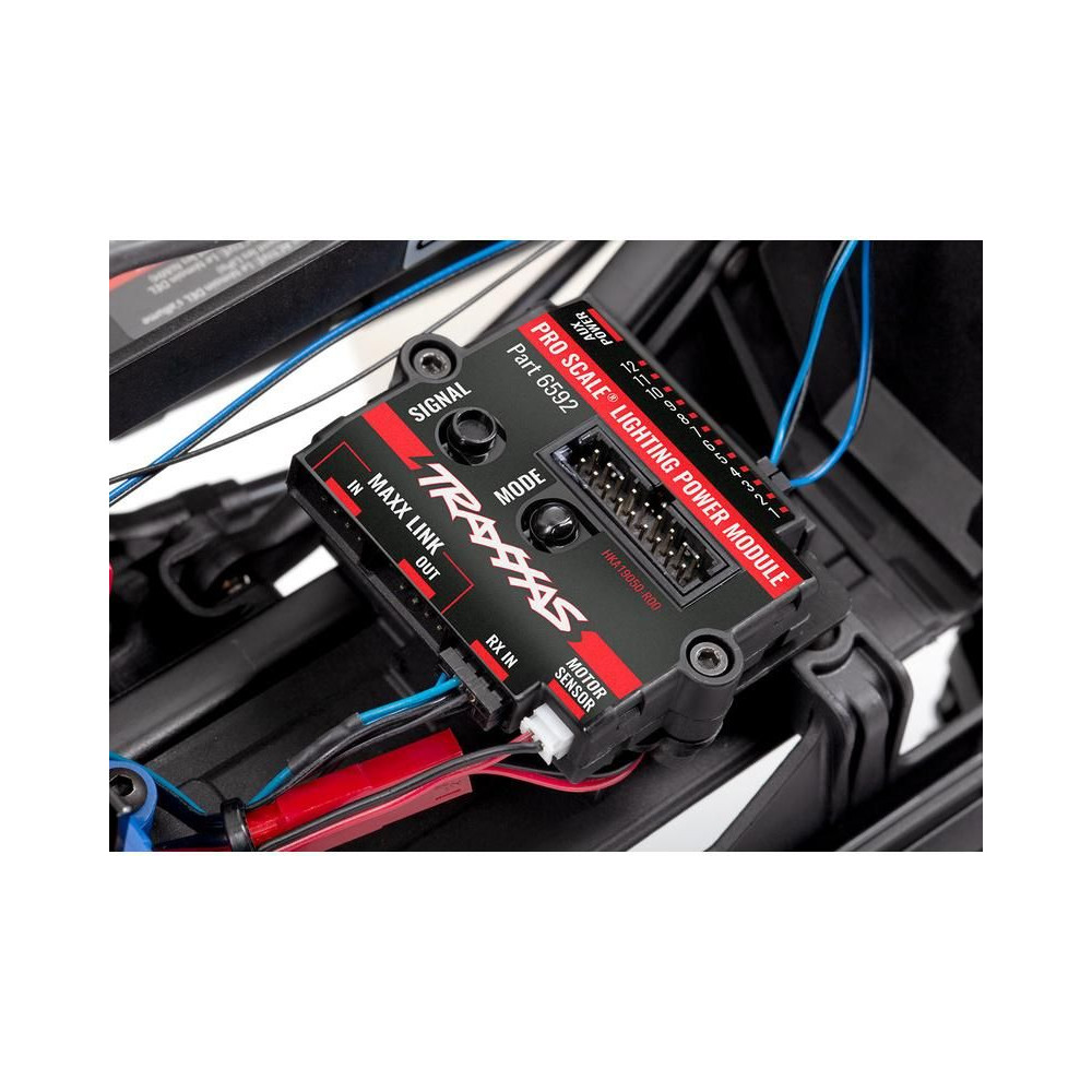 Traxxas Pro Scale LED világító készlet TRX-4 Sport RC autómodellekhez. Funkcionális fék- és tolatólámpák, funkcionális irányjelzők, funkcionális figyelmeztető lámpák, hátsó lámpák, állítható fényszóró intenzitás. További világítás hozzáadható. Hiteles fényfunkciók.